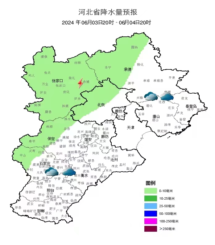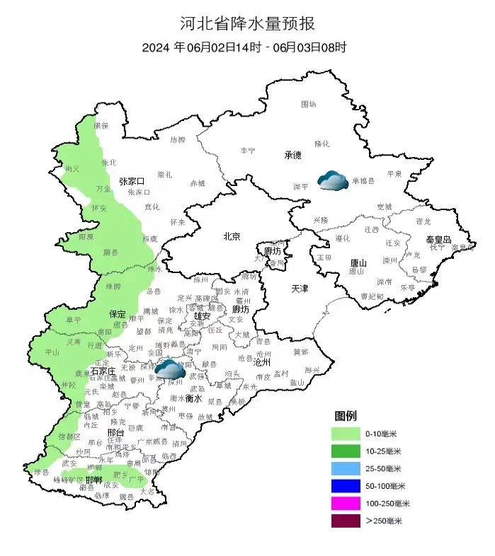 具体天气预报为:6月3日,多云,偏东风1~2级,气温34~19℃;6月4日,阴,气温34~24℃;6月5日,阴转多云,气温32~24℃;6月6日,多云,气温32~25℃;6月7日,多云,气温33~21℃;6月8日,晴,气温32~22℃。
