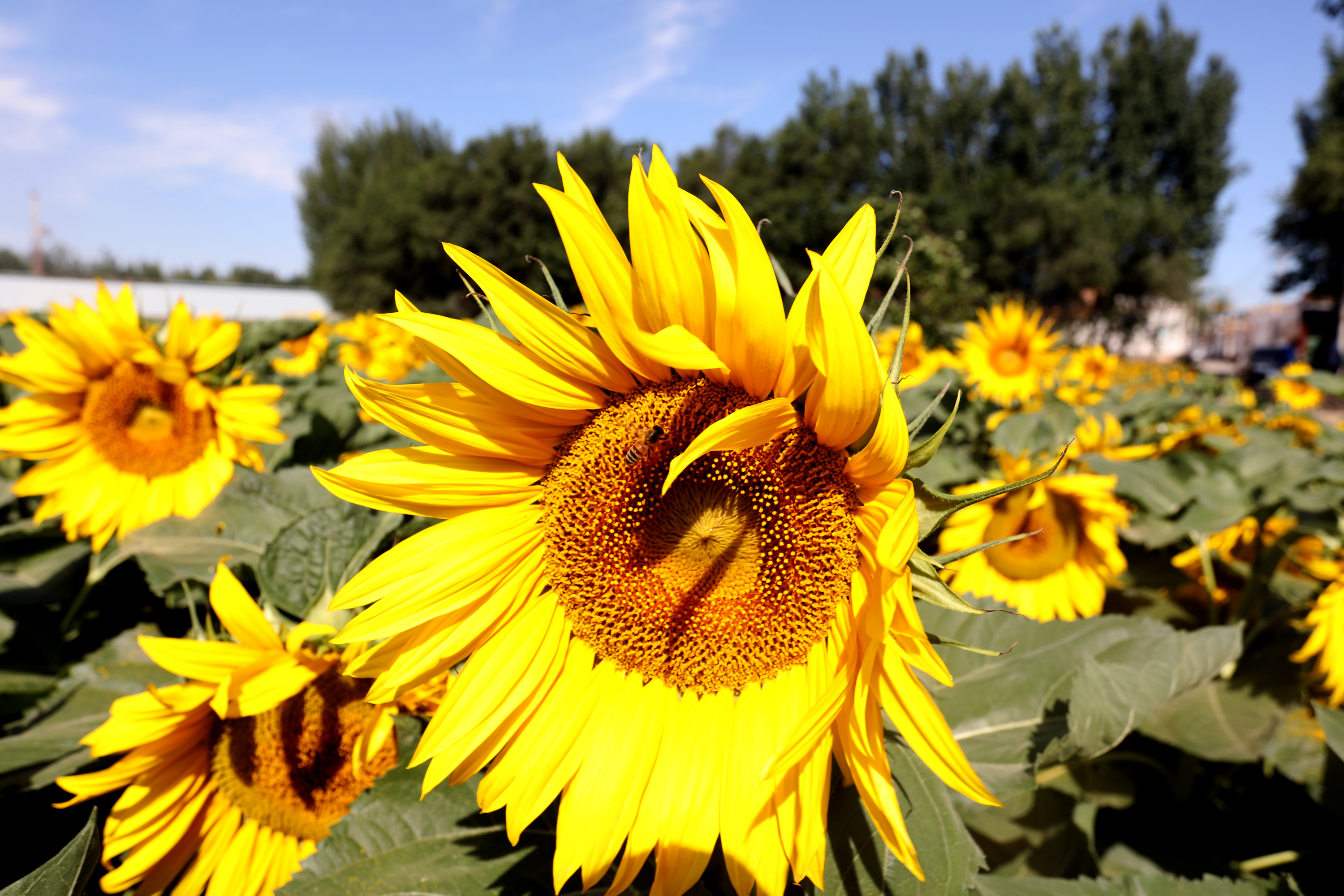 6月1日,记者沿着通往中湖大道的019乡道行驶,一路上看到,附近村民种植的向日葵正迎着阳光盛放,金色的葵花在绿叶的衬托下格外耀眼,硕大的花盘宛若一张张灿烂的笑脸,在麦收的季节里勾勒出一幅幅喜人的“丰”景。微风拂过,向日葵在风中摇曳多姿,空气中弥漫着花的芳香,吸引了过往市民或驻足欣赏、或拍照留念。