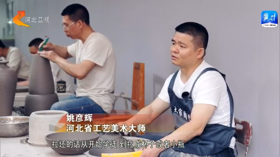 拉坯的话从开始学徒,到拉成那个杯子或者小瓶,最少3年到5年的时间,我是26年了,从原料啊每个环节都得要了解到,现在就是也带徒弟,要生生不息让它,一定要再传承下去。