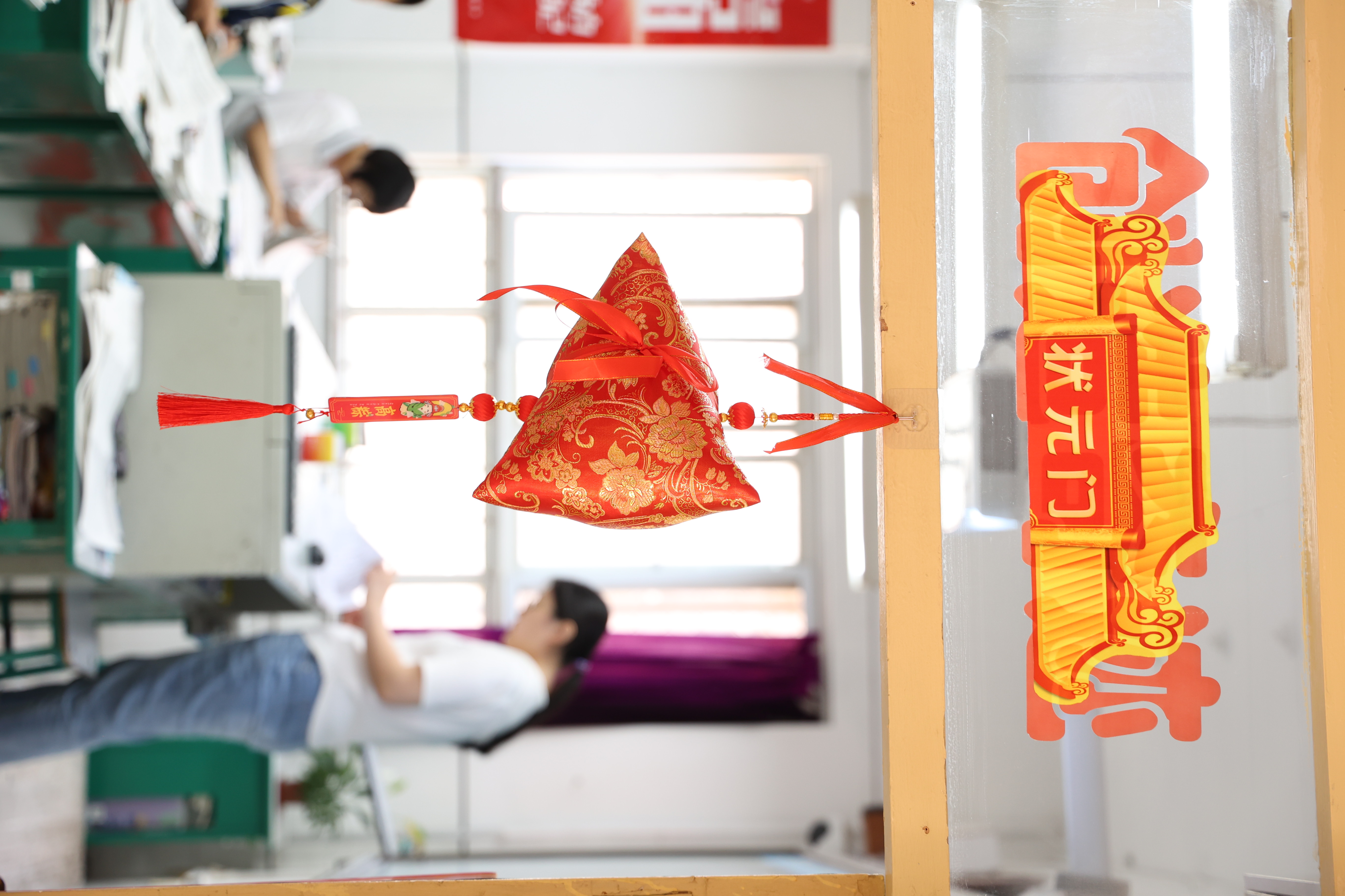 挂在门框上的粽子寓意“高中”。