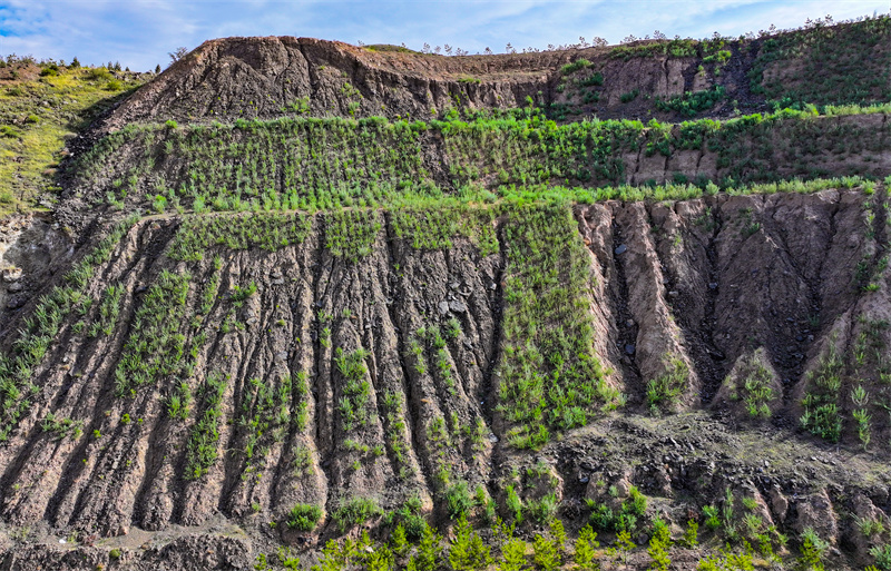 6月5日,航拍的位于蔚县陈家洼乡西部山区一带的玄武岩矿。 河北日报记者 耿 辉摄