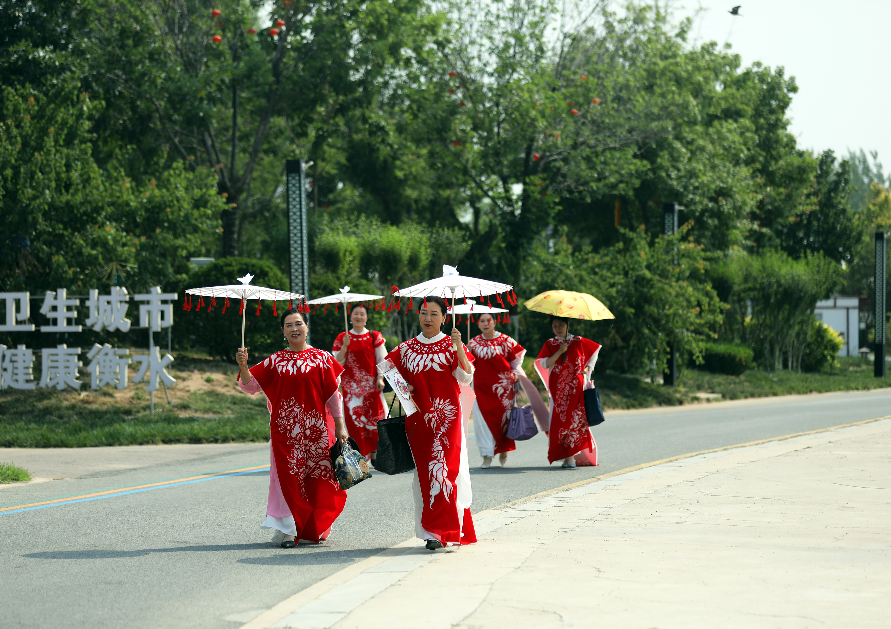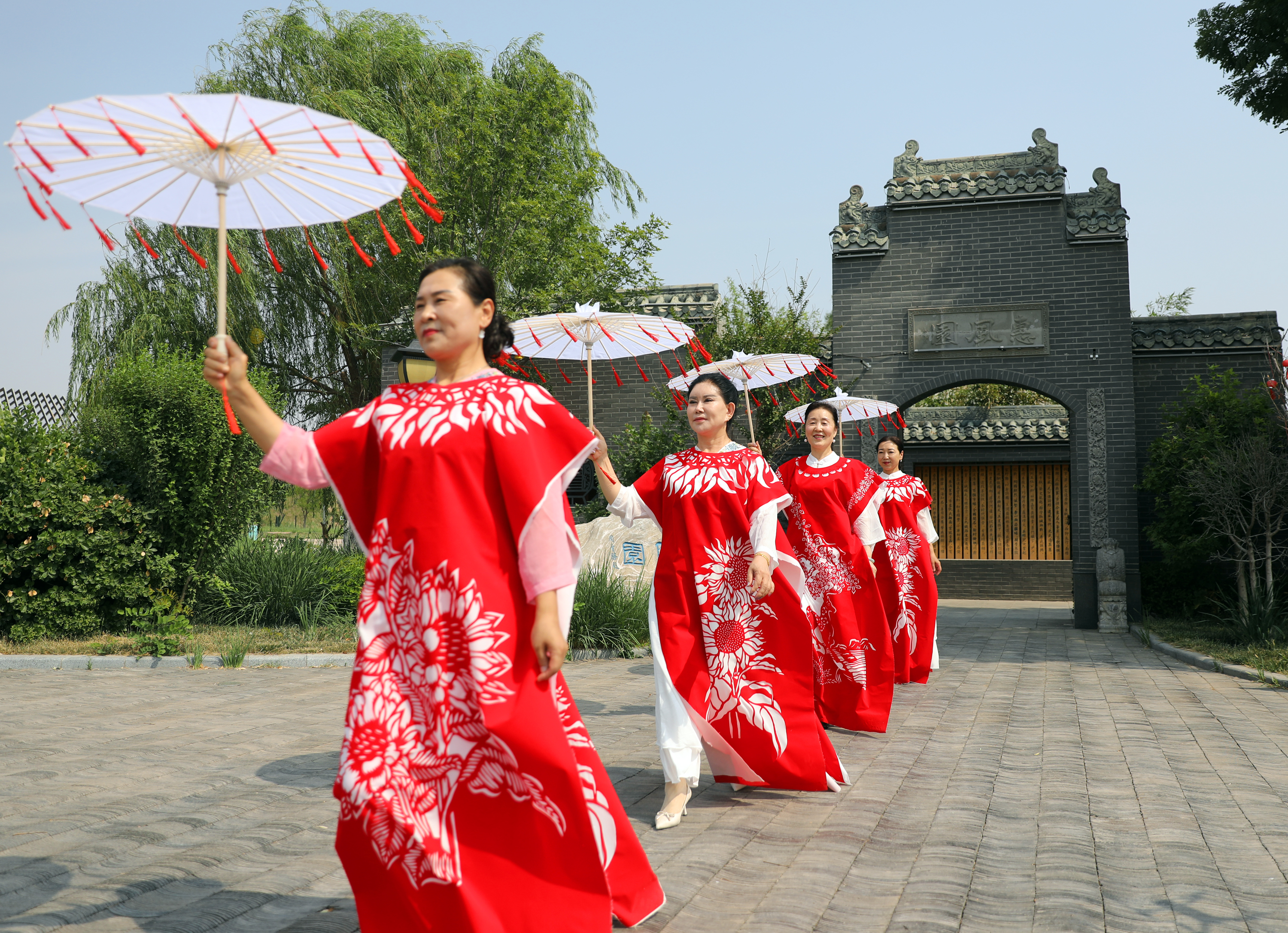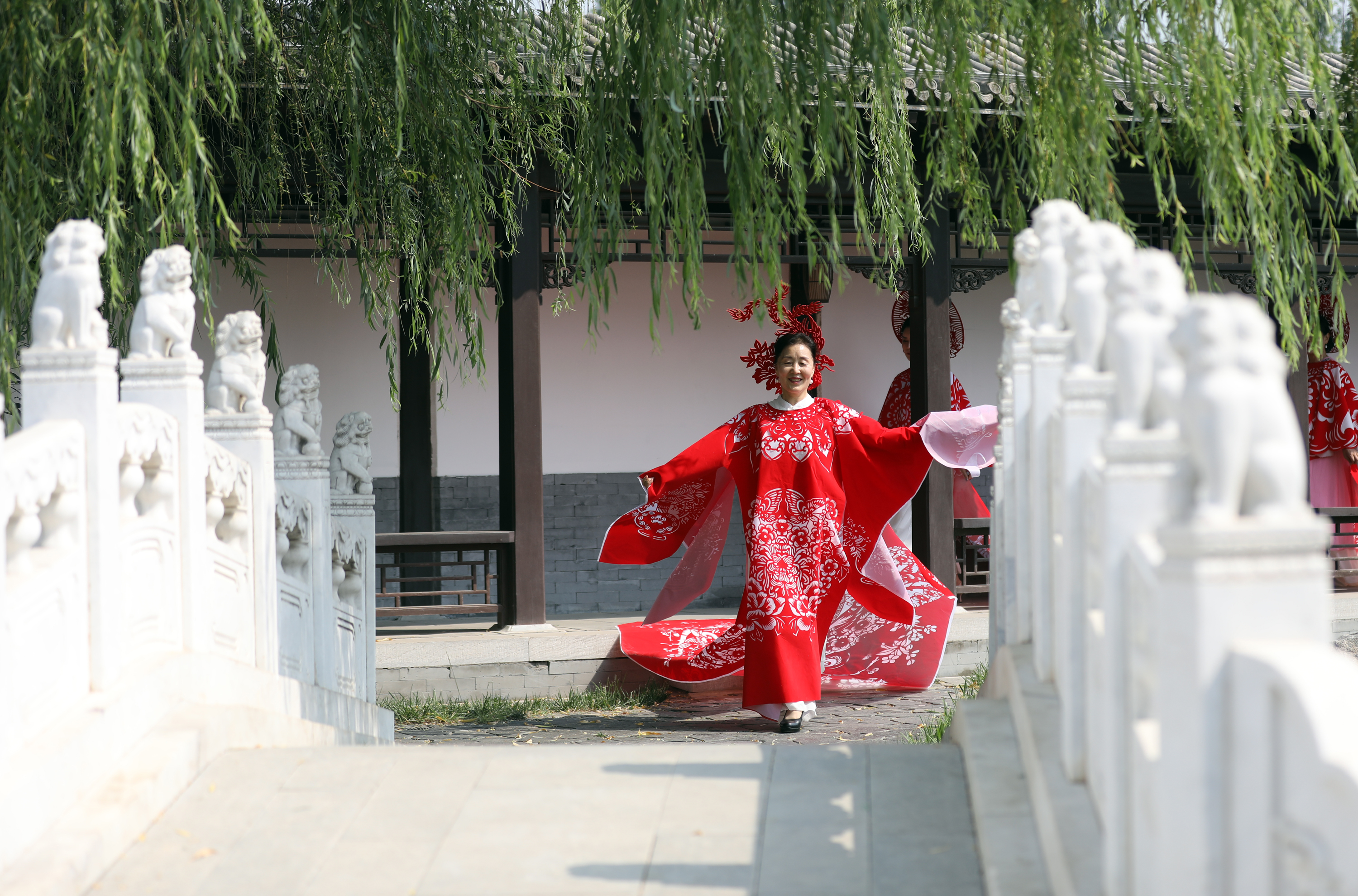 6月6日,在园博园内,一路通关、旗开得胜、一举夺魁……祝福高考寓意的红色剪纸服饰惊艳亮相,5名模特披着中国红镂空图案剪纸服装,在优美的环境中款款走秀,吸引了游客,“真漂亮”“非常美”游客们纷纷赞美道。