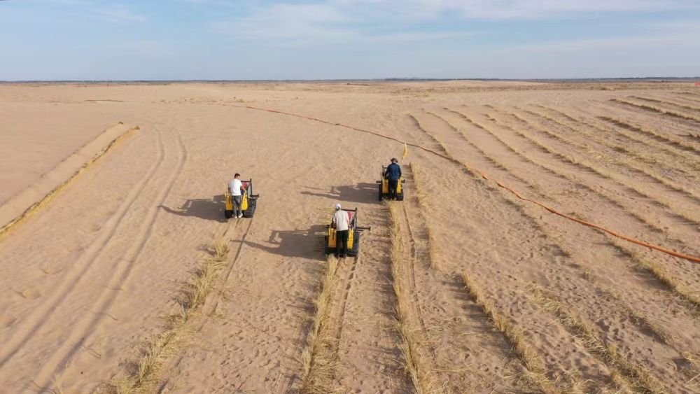 如今,运输苗木的无人机、沙障铺设机、固沙机等多种机械越来越多地运用于“三北”工程攻坚战区域,科技的力量不断助力提升治沙效能、延伸祖国北疆的绿色版图。