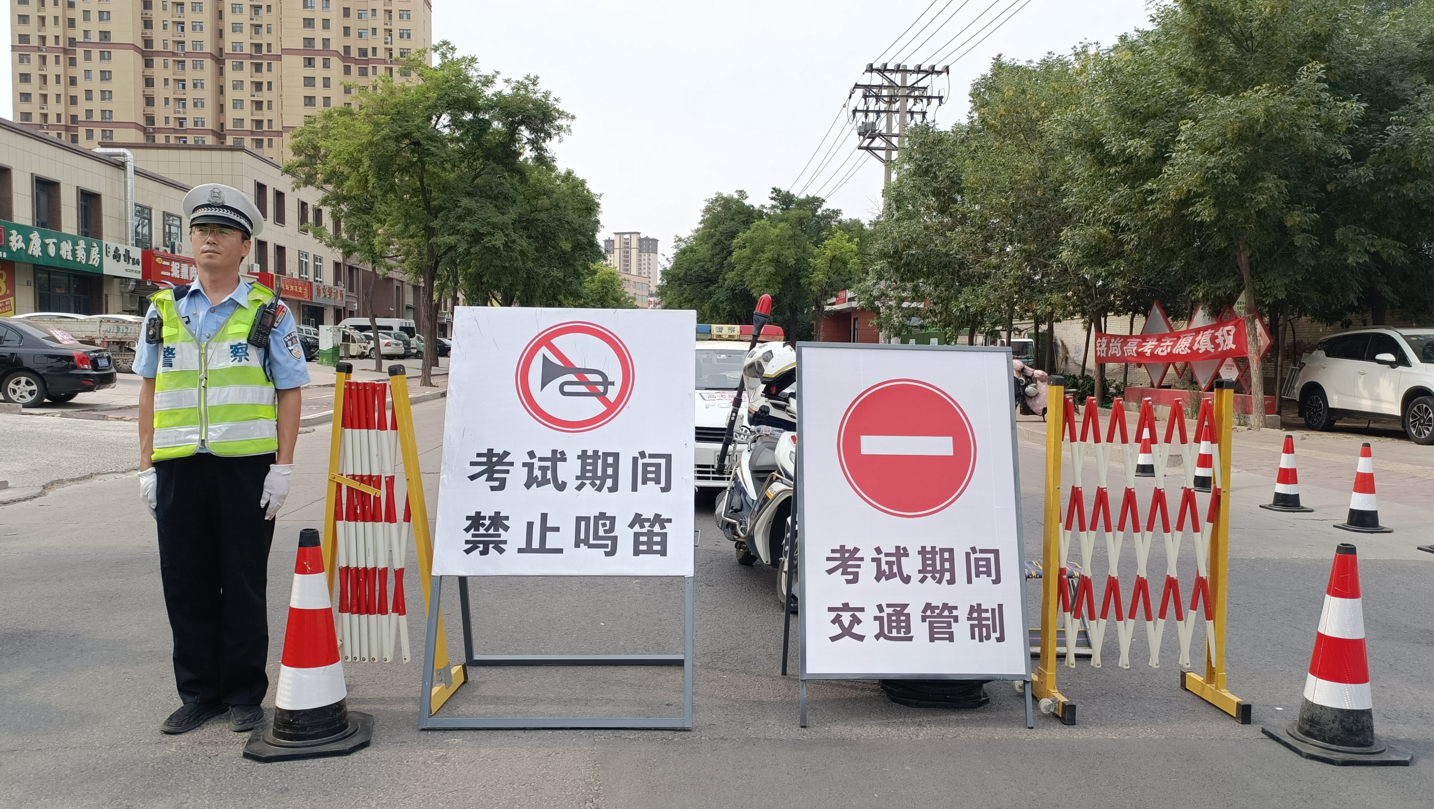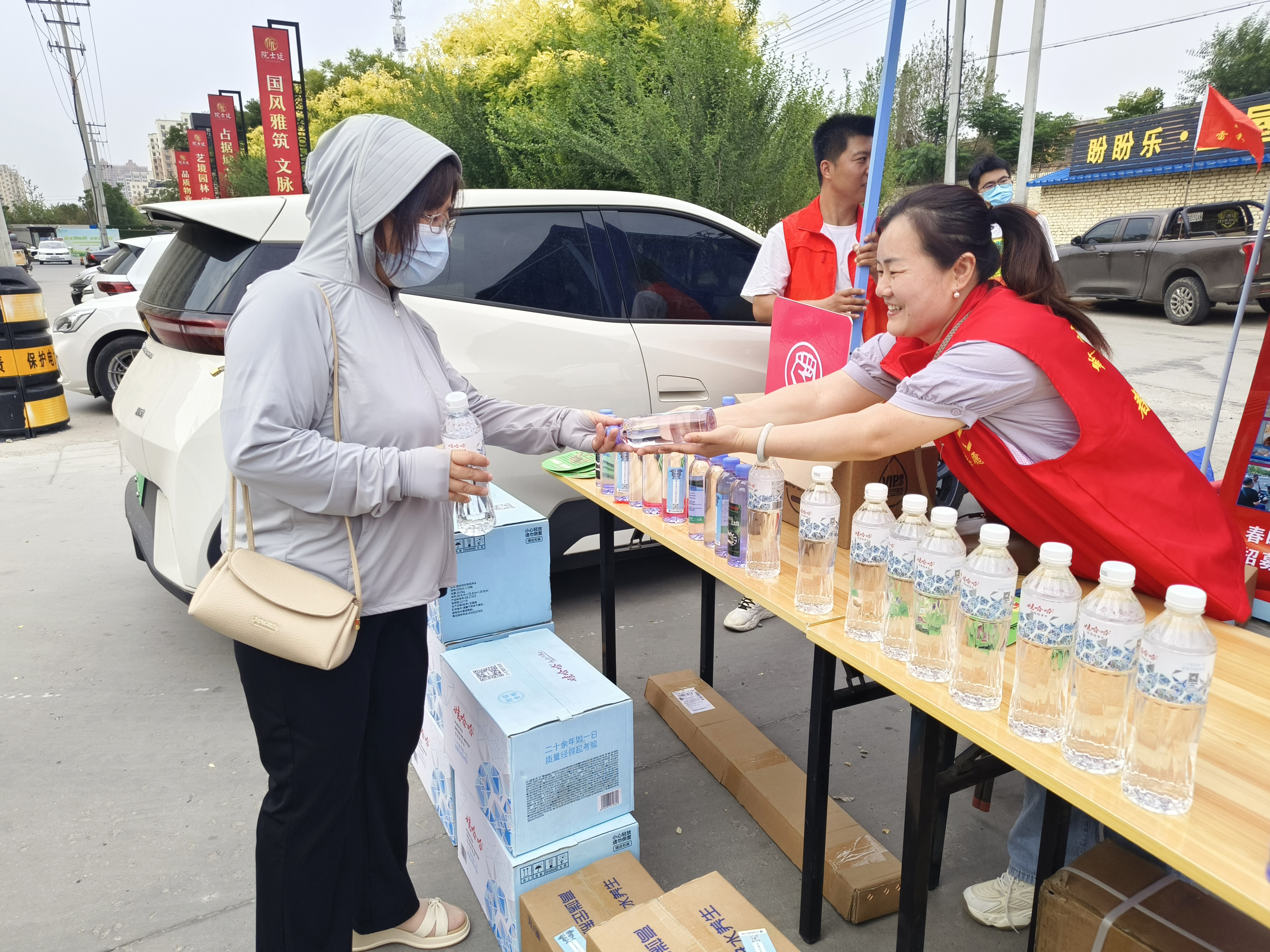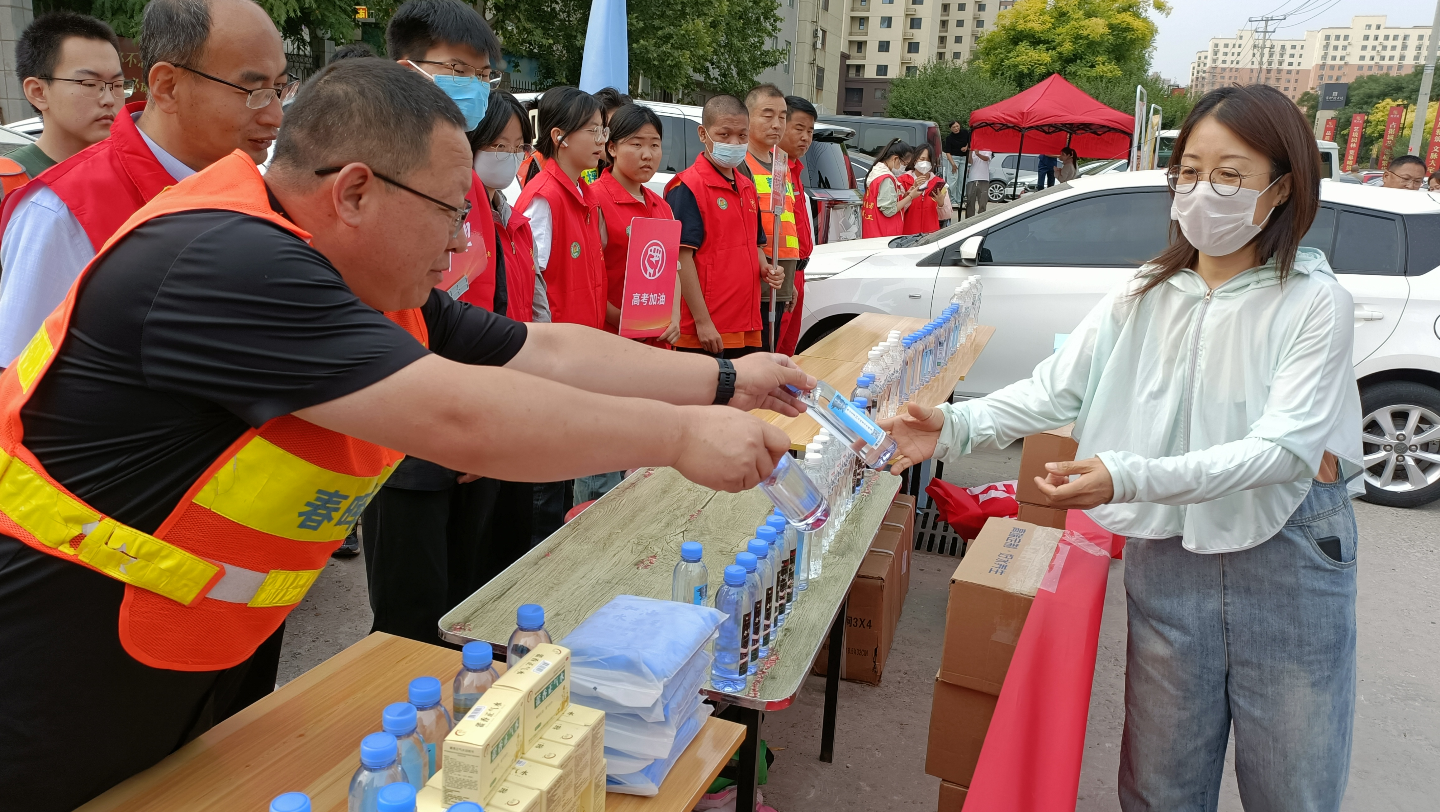 一年一度的高考拉开帷幕,满怀希望的学子们步入考场,书写属于他们人生的重要篇章。6月7日,高考第一天。一大早,身穿红马甲的志愿者们早早来到衡水市第二中学设立志愿服务站点。大家在桌子上整齐摆放上免费矿泉水、考试文具、防暑药品等应急物品,为考生及家长提供全方位贴心服务。考场内,学子奋笔疾书。考场外,志愿者温暖守护。在考点外随处可见志愿者的身影,为有需要的人提供温暖的服务。他们来回穿梭,为广大高考考生发放饮用水和考试用品等爱心物资。考试开始后,职工志愿者们为家长提供饮用水和休息地点,安抚家长们紧张的情绪。同时,志愿者们还积极配合环卫工人清扫纸屑等杂物,始终保持校园大门口一片干净整洁,并协助交警维护学校周边的交通秩序。顺丰快递员李兴华第一次参加护航高考的志愿服务活动,他说:“我感觉这个活动很有意义,能为考生和家长们做一点事情,心里很开心。”