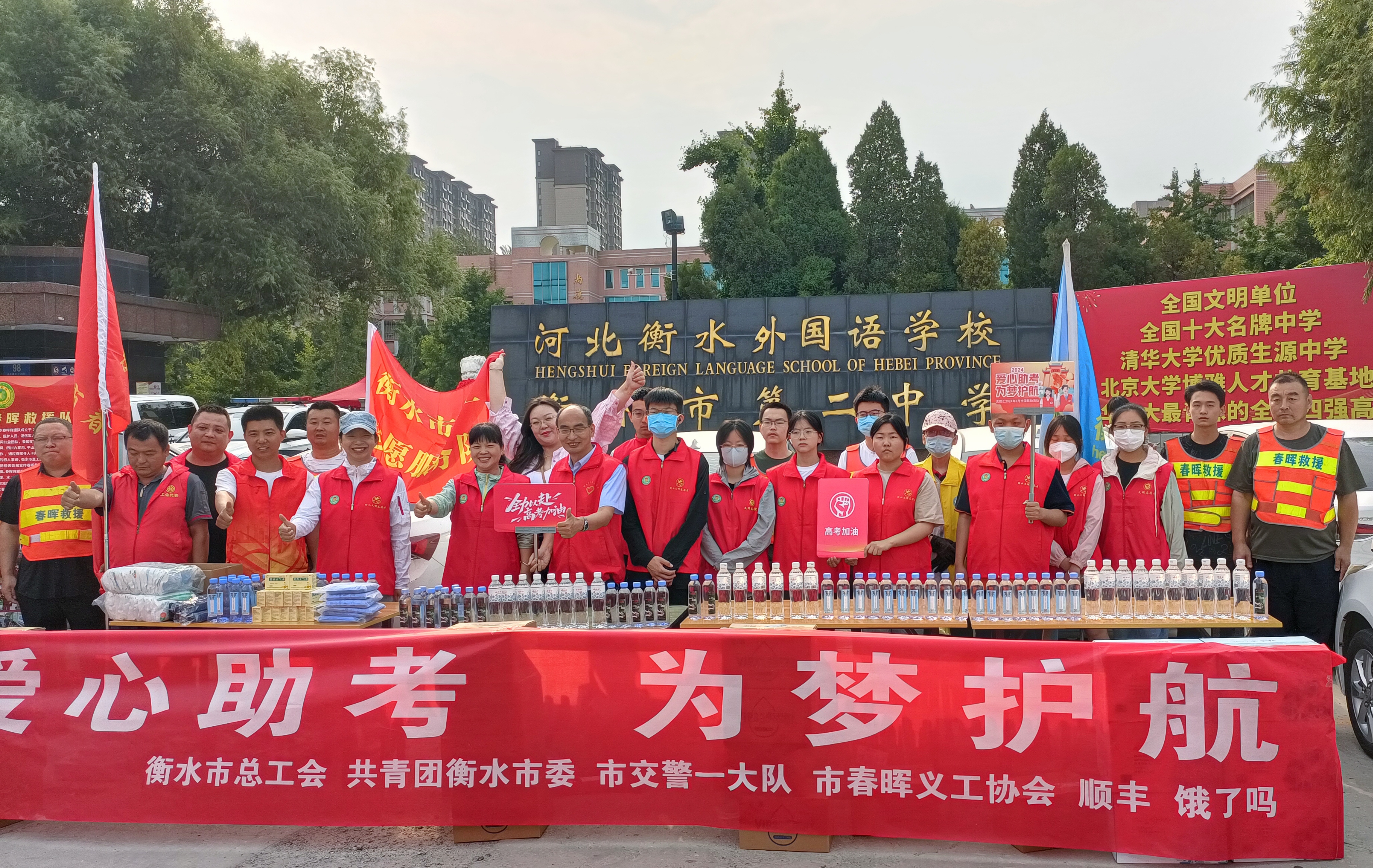 为进一步弘扬“奉献、友爱、互助、进步”的志愿服务精神,精心做好2024年我市高考志愿服务保障工作,给考生和家长提供力所能及的服务,衡水市总工会、共青团衡水市委、市交警一大队、市春晖义工协会、顺丰、饿了吗等企事业单位在高考期间开展“爱心助考·为梦护航”志愿服务活动,为考生提供爱心送考、爱心物资、现场引导、秩序维护等志愿服务。