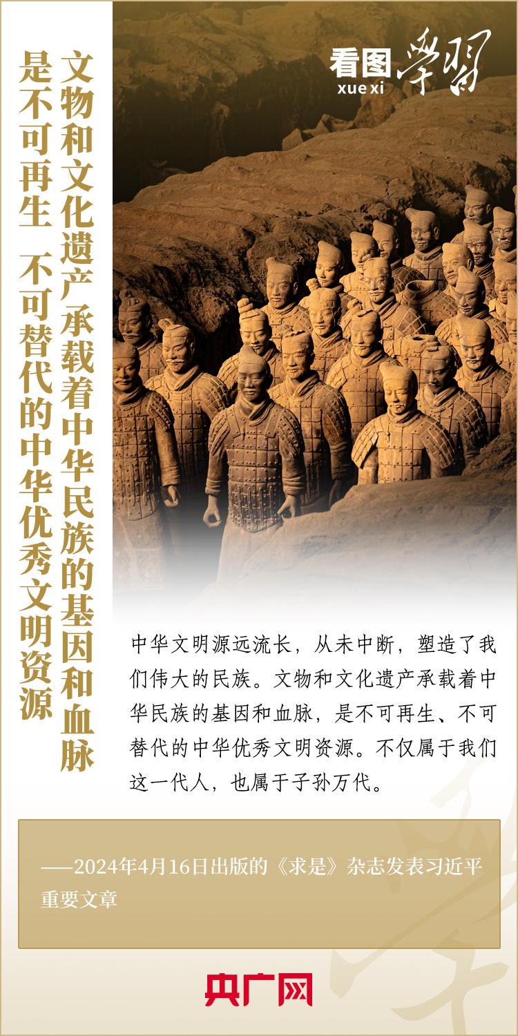 文化兴则国运兴,文化强则民族强。党的十八大以来,习近平总书记对中华优秀传统文化的传承发展作出全面系统深入阐述,在赴各地调研时考察当地历史文化资源保护工作,并就文化遗产保护传承作出重要指示,叮嘱要把“中华民族的基因和血脉”好好传下去。6月8日是文化和自然遗产日,今年的主题是“保护文物 传承文明”。一起来学习!