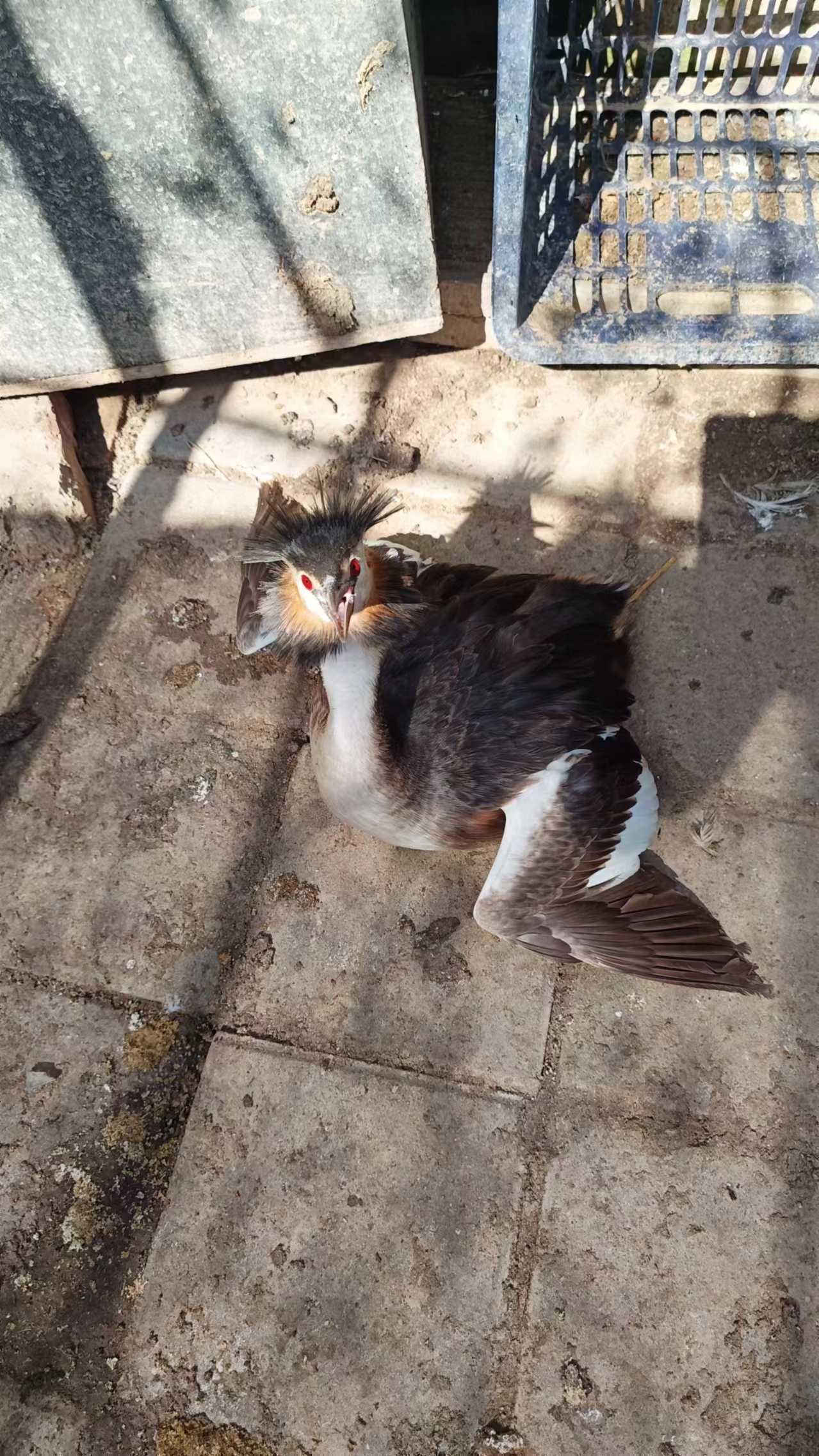 6月9日,滨湖新区南赵常村,一只外形像鸭子的大鸟突然飞进村民王先生家的鸡窝,在鸟类摄影爱好者的帮助下,认出竟然是一只凤头鸊鷉,现已将其放归老盐河。