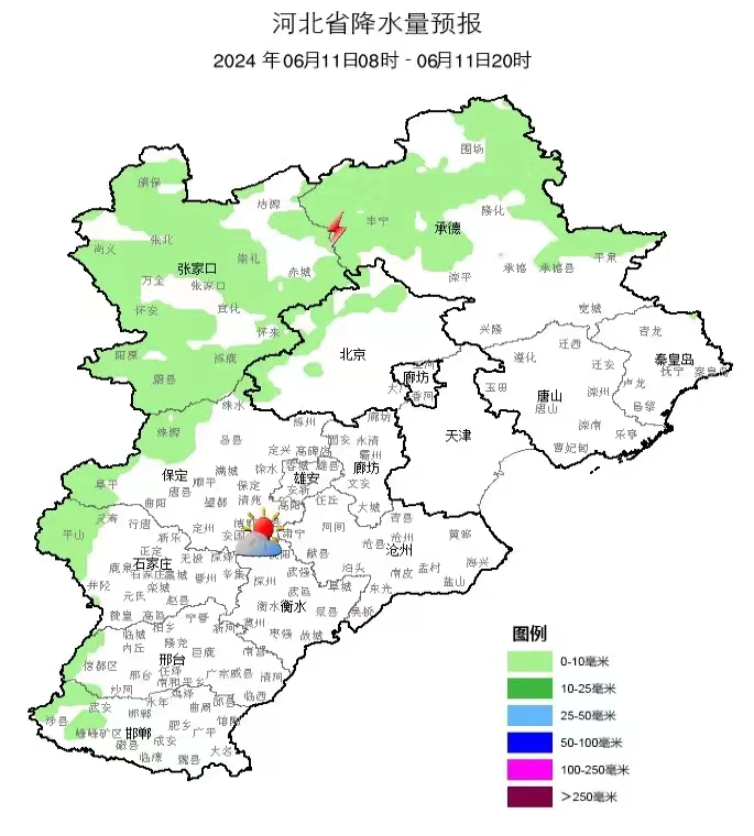 具体天气预报为:6月11日,晴间多云,偏南风4~5级,阵风6~7级,气温40~26℃;6月12日,多云间晴,偏南风4~5级,阵风6~7级,气温41~27℃;6月13日,晴转多云,偏南风4级左右,阵风6级,气温41~27℃;6月14日,多云间阴有雷阵雨,东北风3~4级,阵风5~6级,气温35~23℃;6月15日,多云转晴,气温33~23℃;6月16日,晴转多云,气温36~25℃。