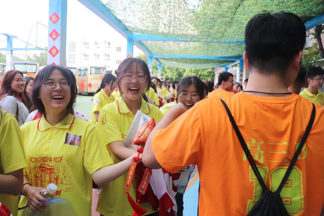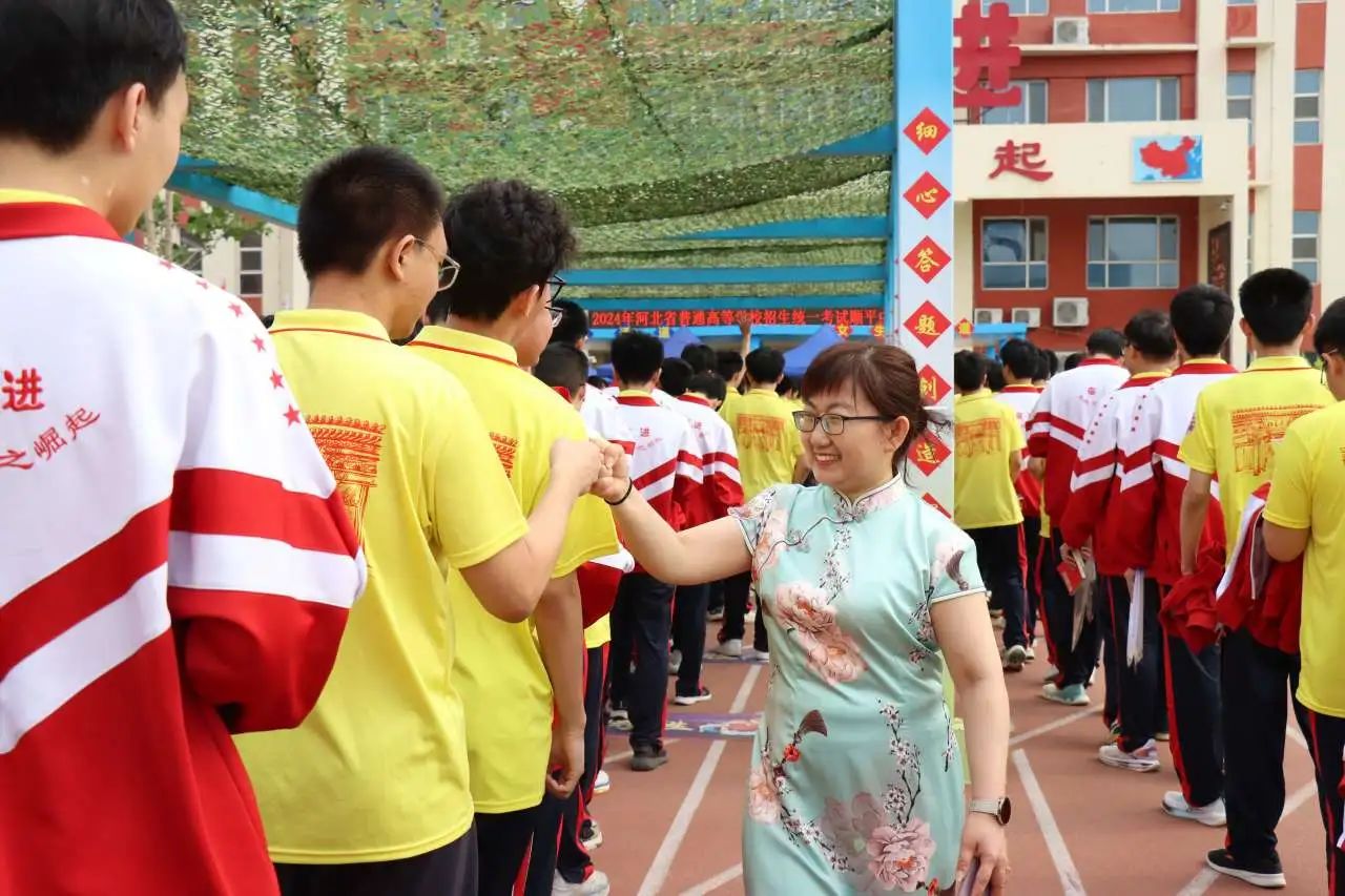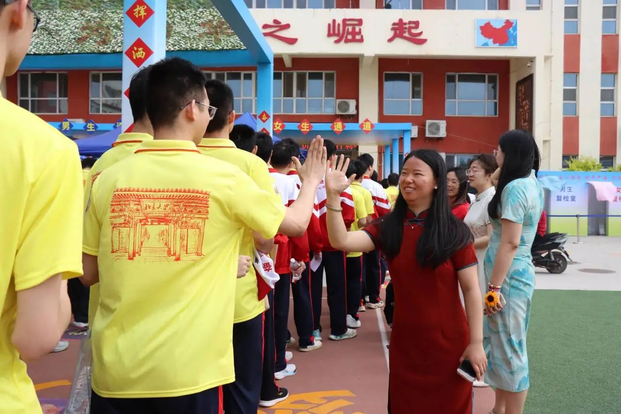 老师们手拉条幅,与同学们击掌拥抱,信心和力量在一声声的“加油”中得到增强。每个同学的脸上都洋溢着自信的微笑,大家带着高昂的士气和满满的元气走向考场。