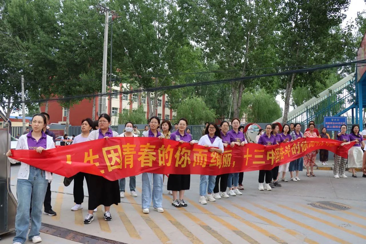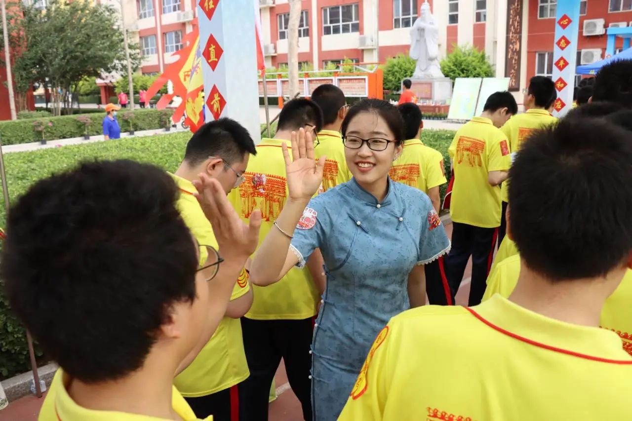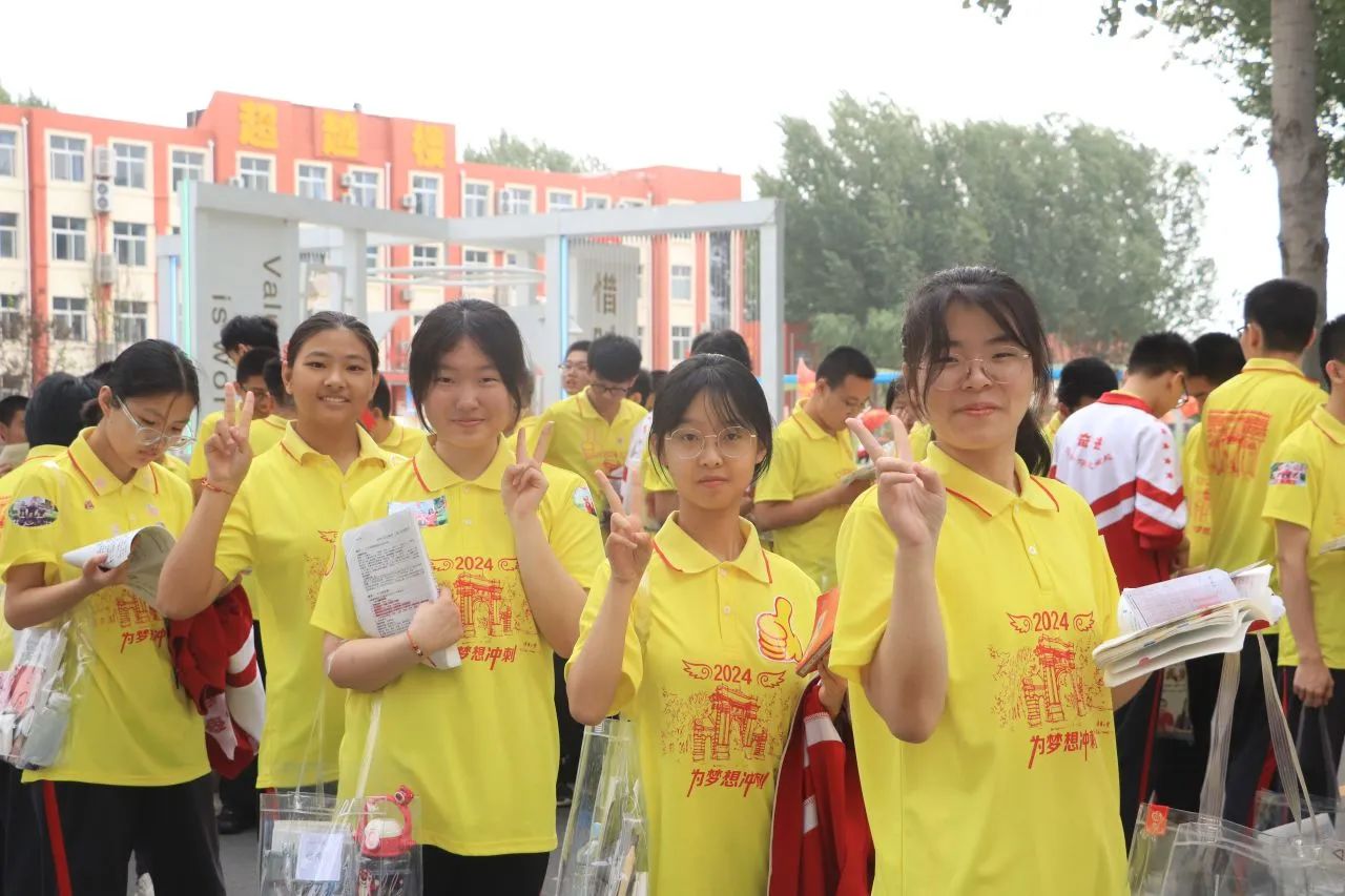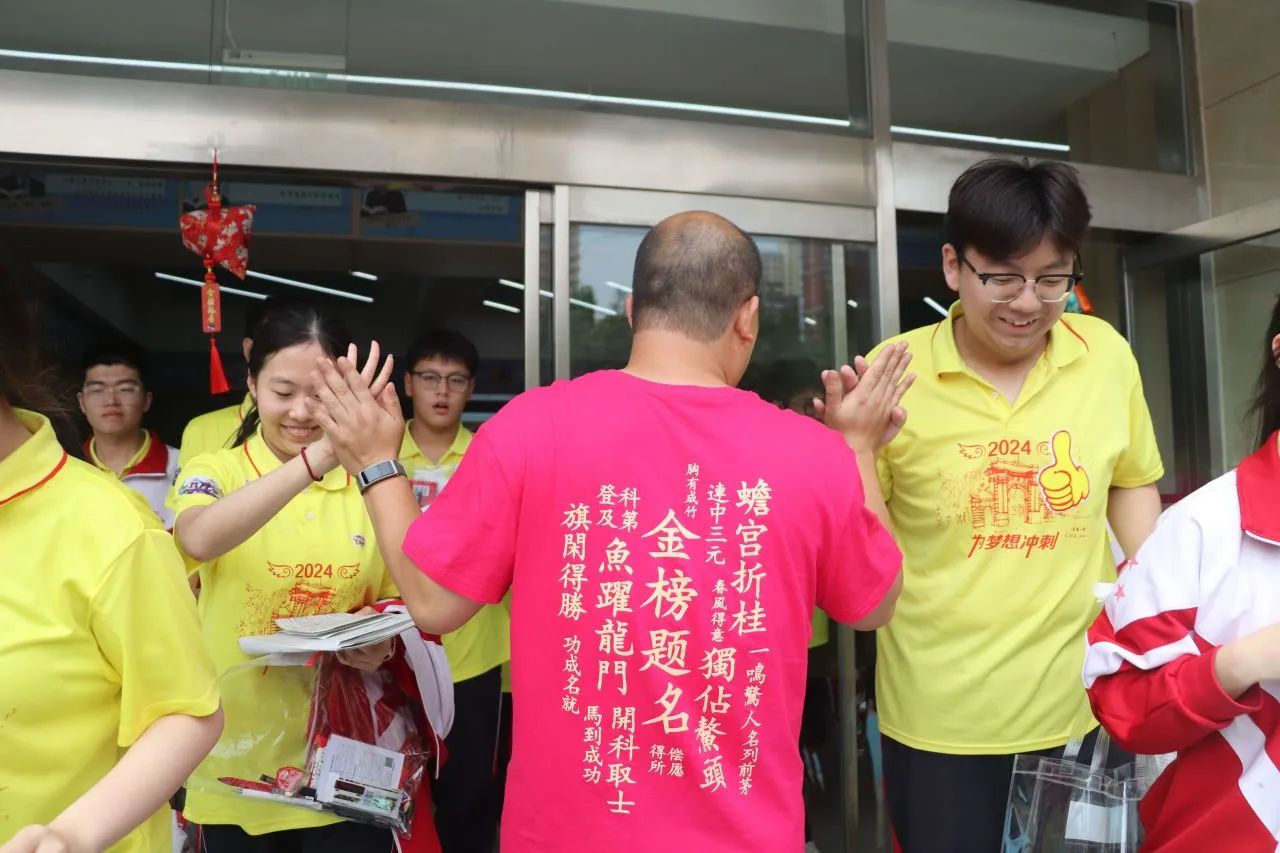 老师们手拉条幅,与同学们击掌拥抱,信心和力量在一声声的“加油”中得到增强。每个同学的脸上都洋溢着自信的微笑,大家带着高昂的士气和满满的元气走向考场。