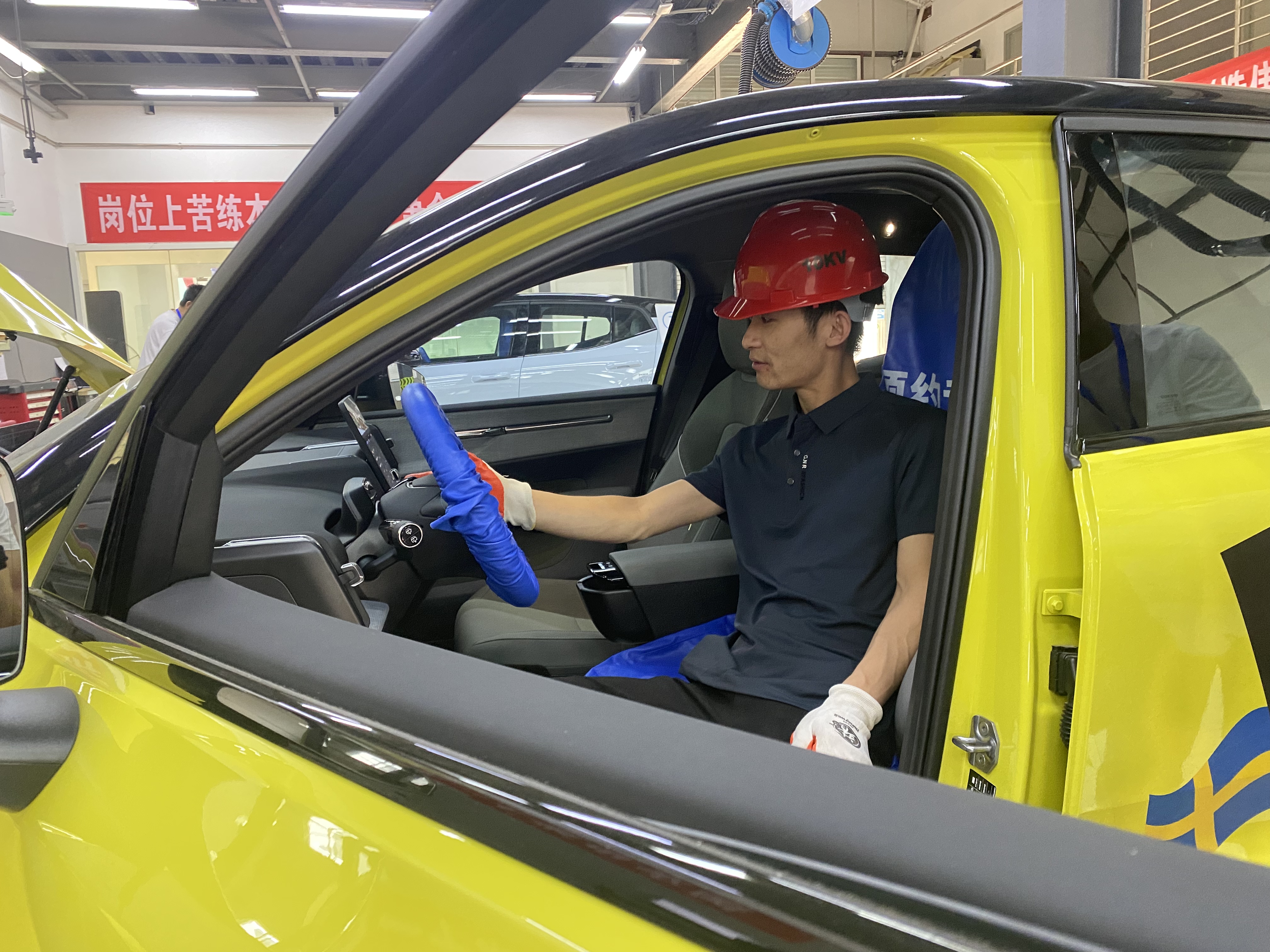 选手正在紧张地维修新能源车。 刘元 摄