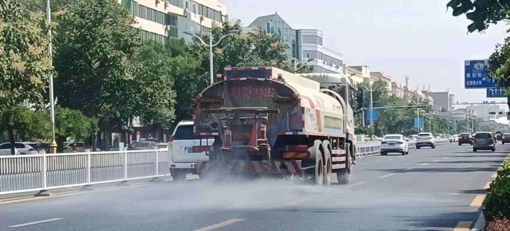 伴随高温,一辆辆洒水车穿梭街头,在给城市降温的同时,也给路上的行人带来一丝凉意。在中心北大街,下午两点,司机张洪义开始上班,他先给车灌满水,立刻就投入了洒水作业中。他说:“天气热,空气太干燥了。我们的洒水车不间断地工作,让地面干净的同时,也能让空气更加清新。”为确保夏季高温天气下环境卫生质量不减、水平不降,市环卫服务中心加大精细化湿扫保洁力度,每天出动洗扫车、洒水车、吸尘车、雾炮车等大型作业车辆120余台,在市区主干道路全力实行“干扫—冲洗—湿扫—洒水—喷雾”五位一体机械化清扫模式作业。调整作业时间,适时补充人工清扫缝隙,增加了一班吸尘作业,同时,从凌晨4点开始,至下午6点,洗扫车、洒水车、雾炮车错时开展不间断洗扫、洒水、喷雾作业,在市区人流密集区域、重点路段,增加作业频次。