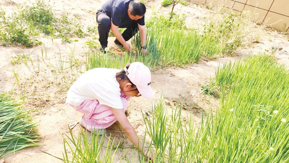 一畦畦小葱,在同学们的细心呵护下,茎秆挺拔、青翠欲滴,丰收在望。师生们齐动手拔葱,感受收获的喜悦。田地里留下了一串串孩子们深深浅浅的脚印,回荡着欢声笑语。学生们用自己的双手创造出一片充满生机的菜园,获得了难忘的劳动体验。