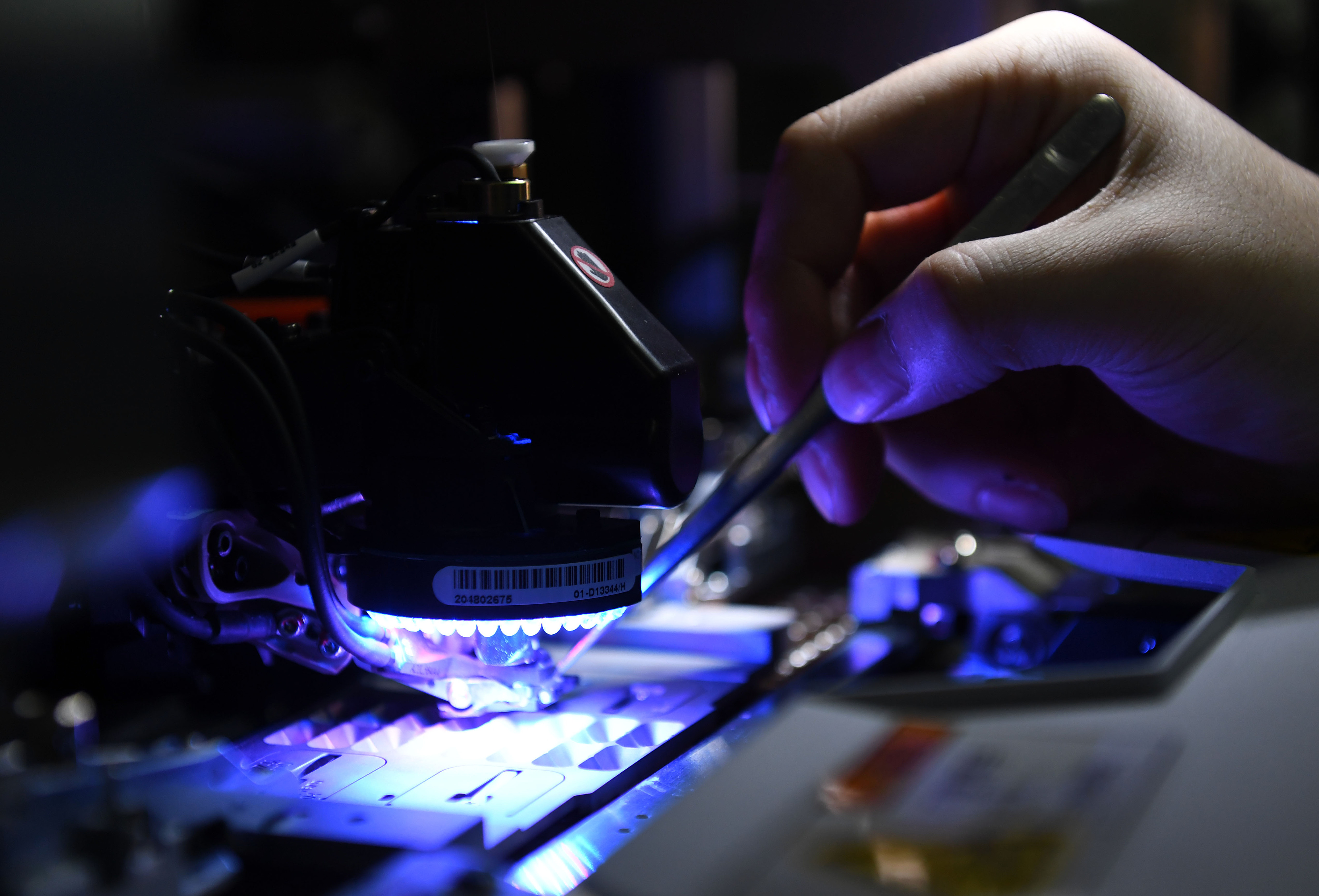 2021年4月24日,安徽省马鞍山市经开区某公司生产线上,工人正在生产芯片。