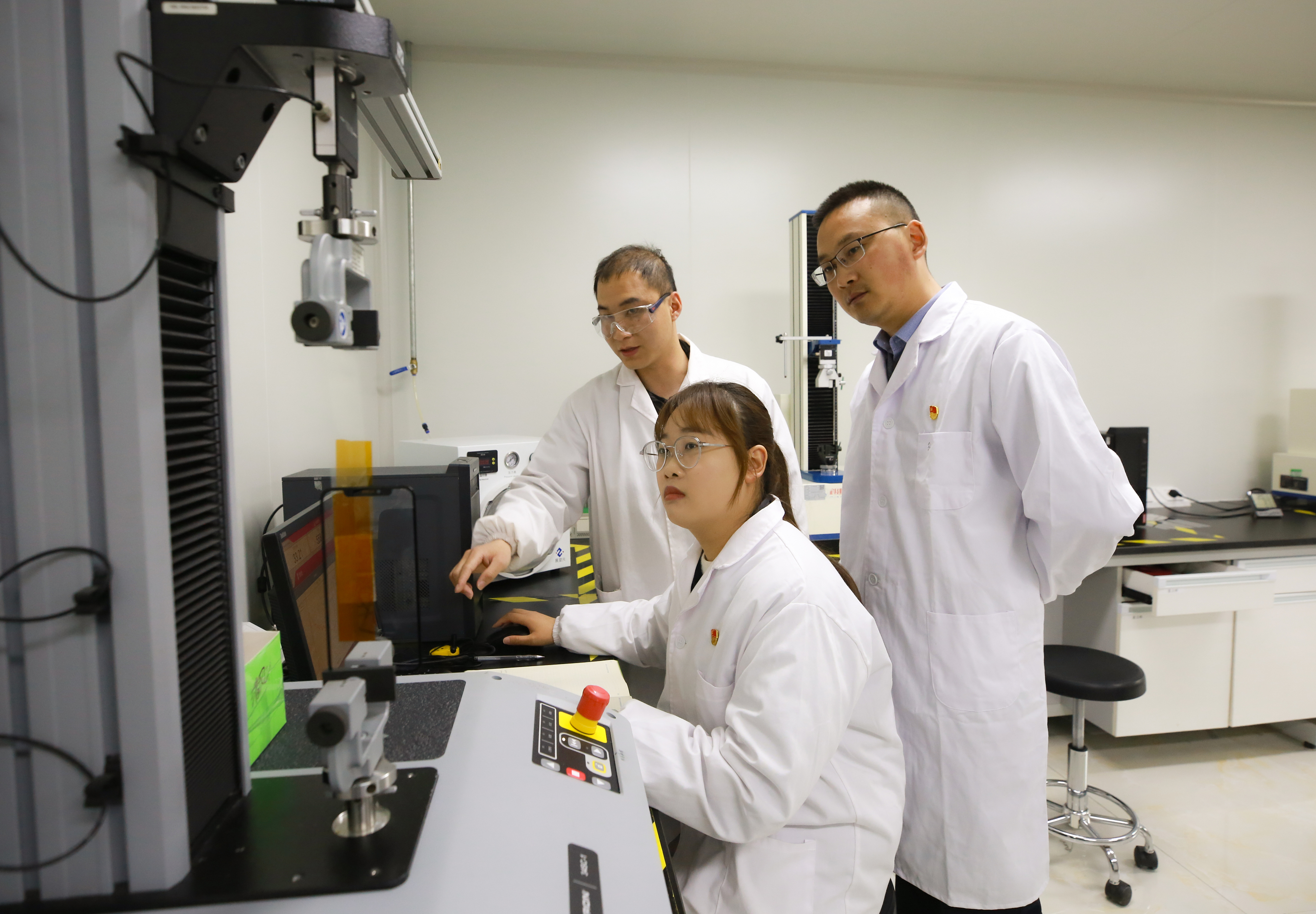 2024年3月18日,江苏省宿迁市泗洪县膜材料产业科研人员正在开展产品实验、检测。