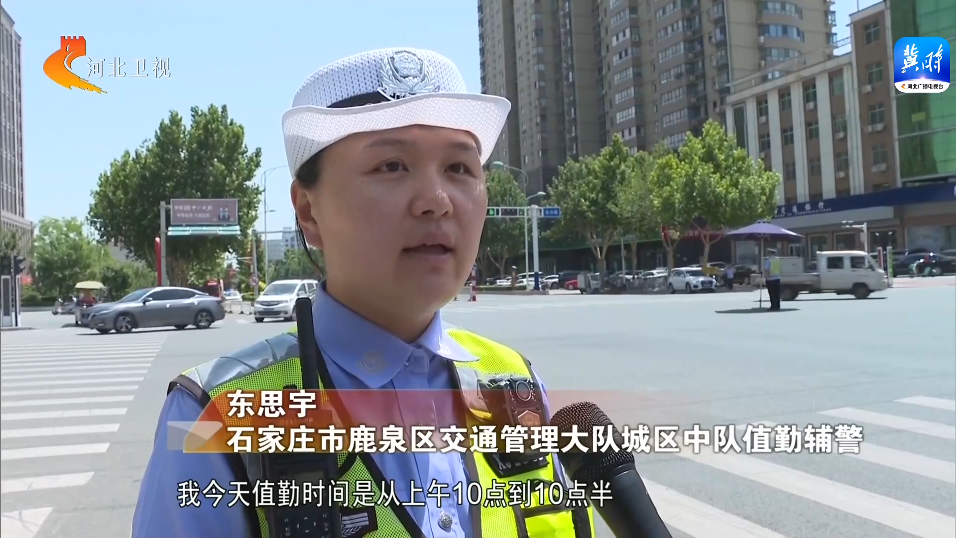 在石家庄鹿泉区,室外温度已接近40摄氏度,在中小学门口等重点值勤点上,交警调整了轮岗频次,半小时一班轮换上岗,以应对高温天气。