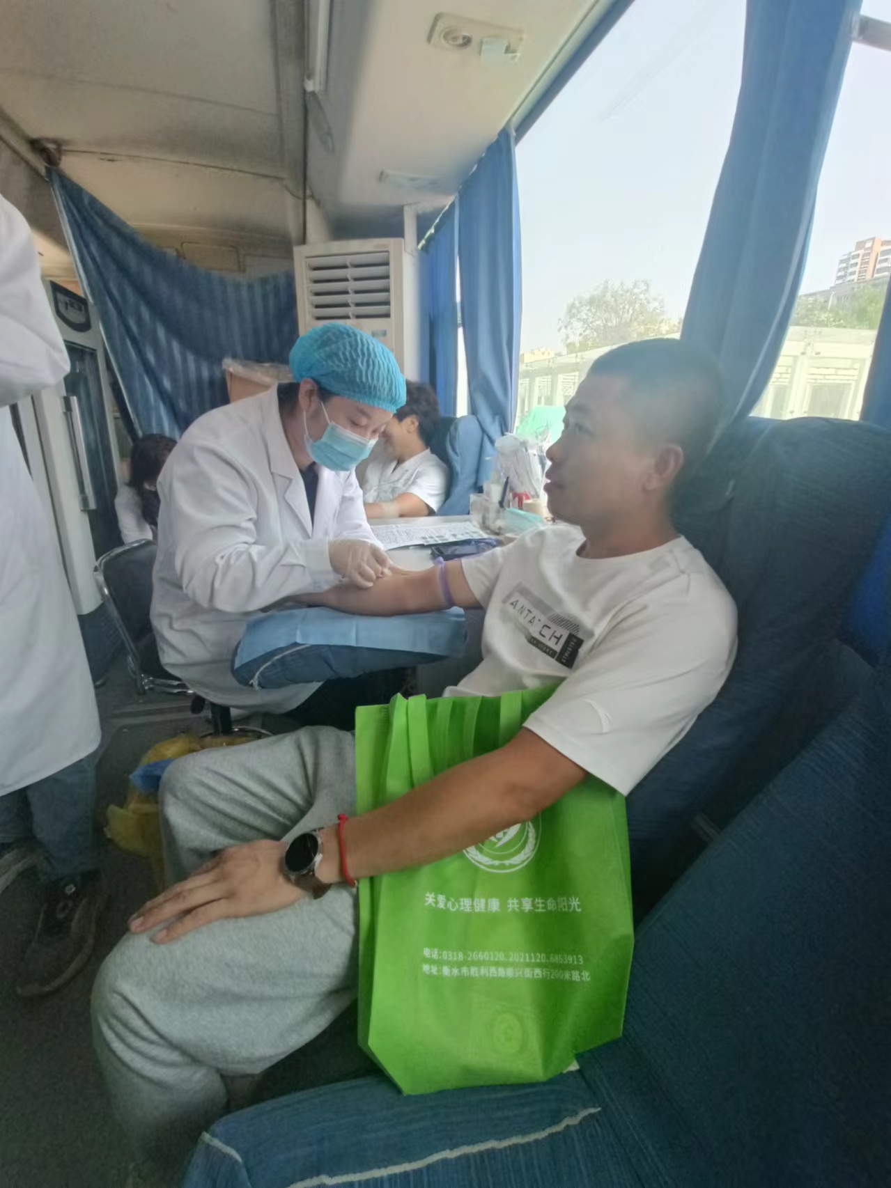 颁发仪式后进行了有奖问答环节,参加活动人员积极抢答献血知识,现场气氛热烈。当日上午,来自衡水市爱国拥军联合会、衡水万达广场职工商户以及现场热心市民踊跃参与无偿献血。20余家医疗单位医护人员现场开展了义诊活动,来自全市各无偿献血志愿服务队的志愿者们开展了无偿献血志愿咨询和献血服务。