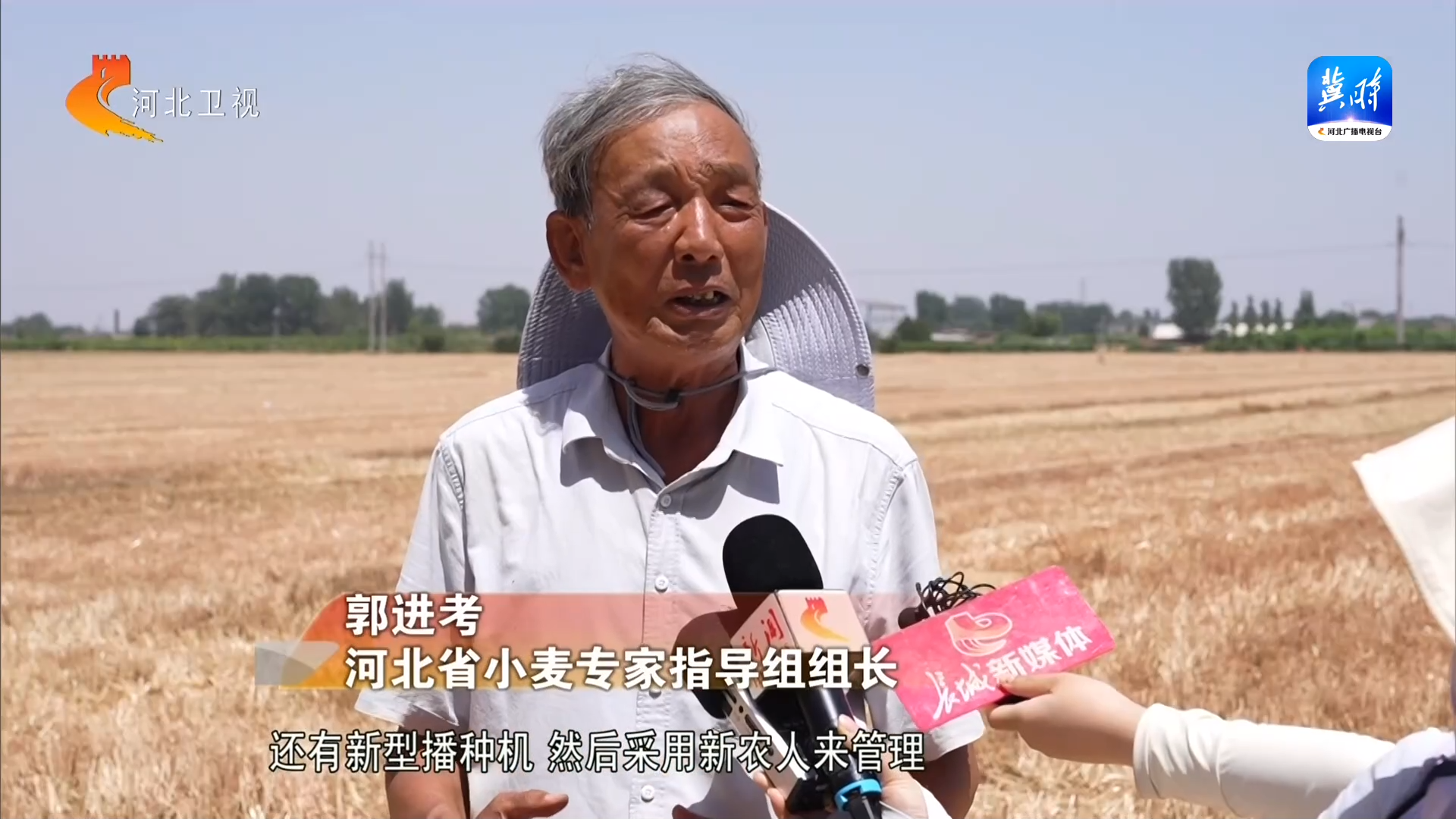 因为这一块地是采取了新品种"马兰1号",然后新技术我们是浅埋滴灌技术,包括精细整地技术,还有新型播种机,然后采用新农人来管理。也就是说,我们这个典型的就是新品种、新技术、新装备、新农人 "四新"融合,让我们的老百姓可看、可学、可用,也就是可复制,来推动我们河北省的小麦单产进一步地提升。