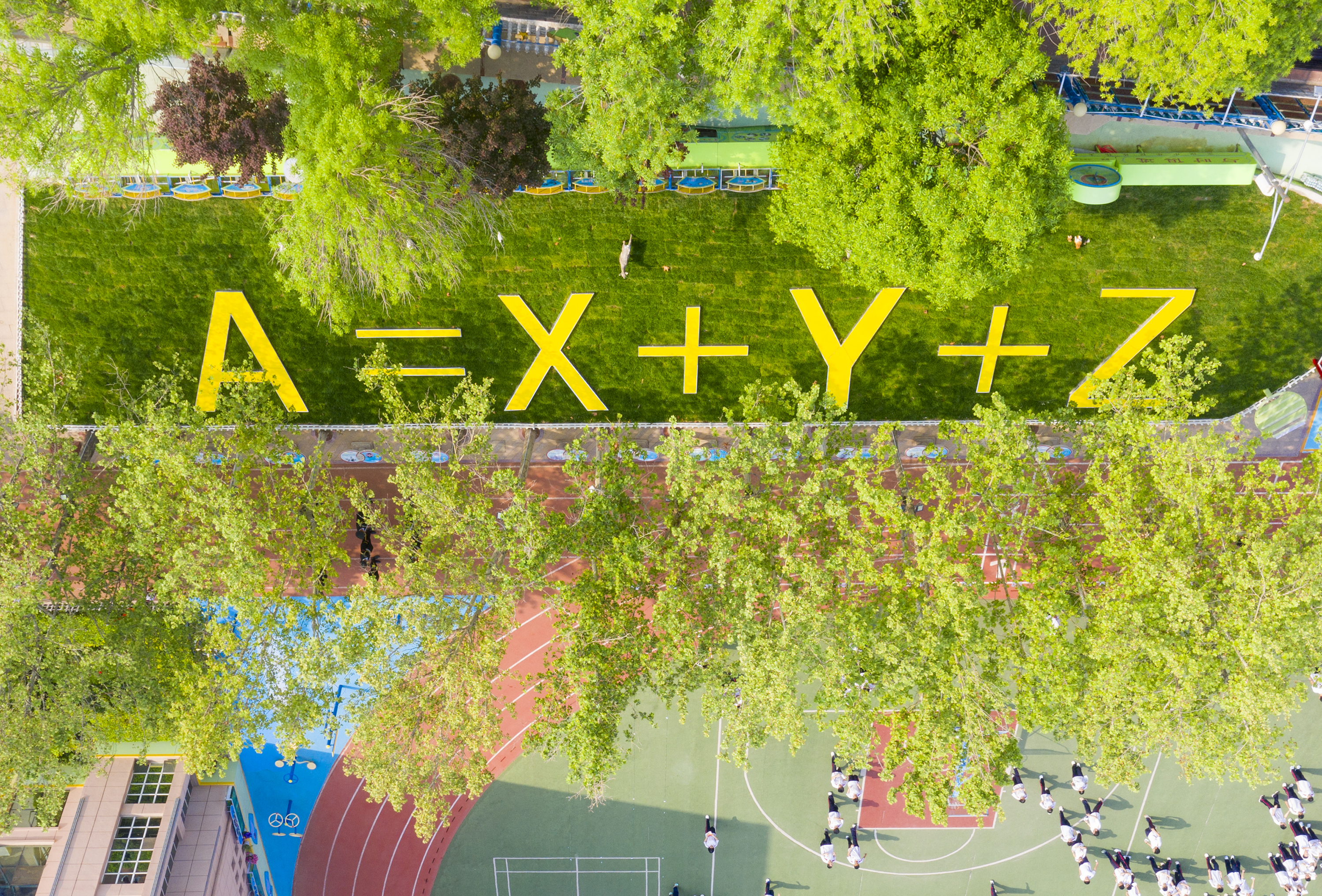 衡水市第十三中学将这一成功公式形象的展现在校园内,并赋予了新的内涵,A代表卓越的人生,X代表潜能激发,Y代表惜时高效,Z代表以德为本,时刻鼓舞着学生满怀热情和斗志学习生活。
