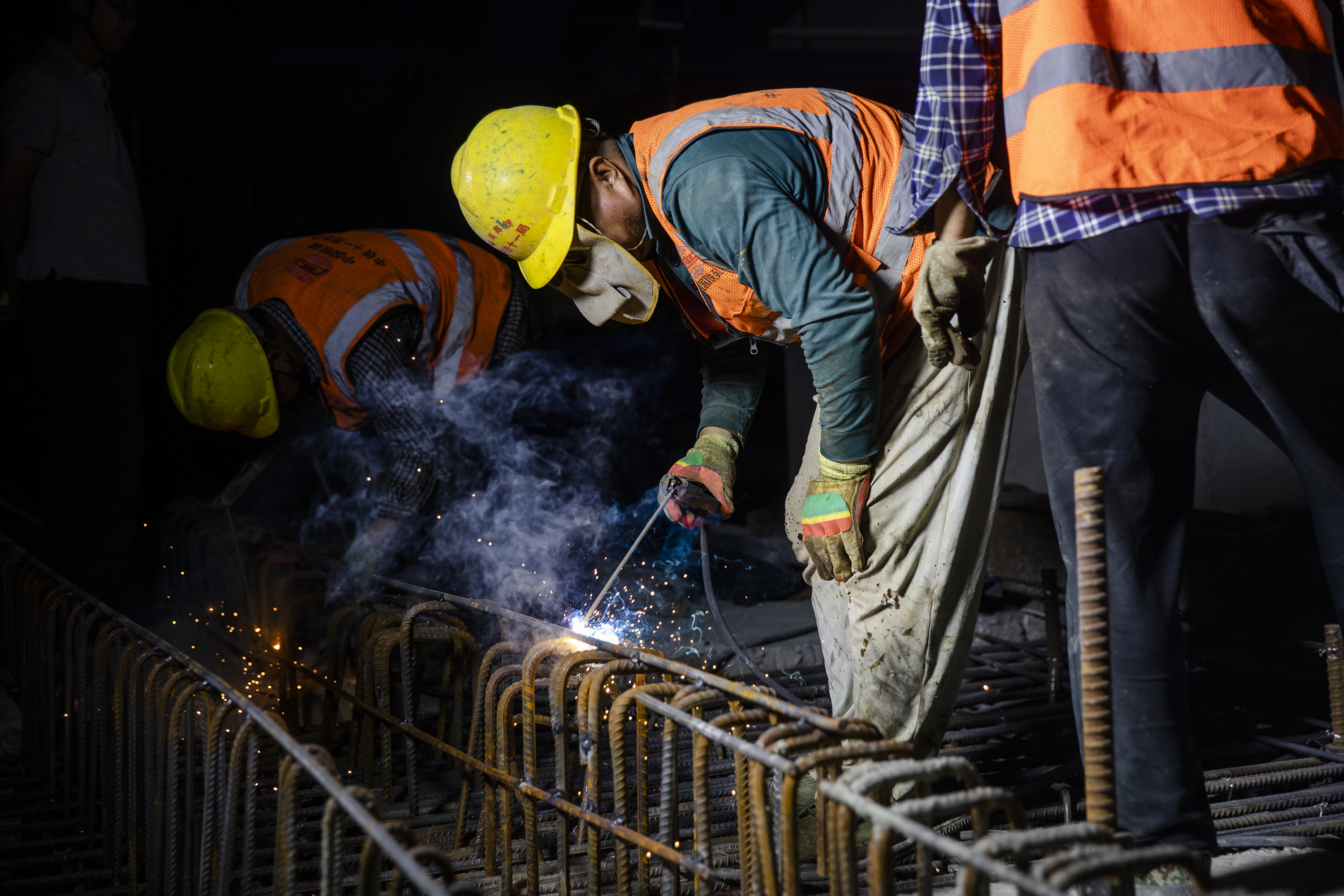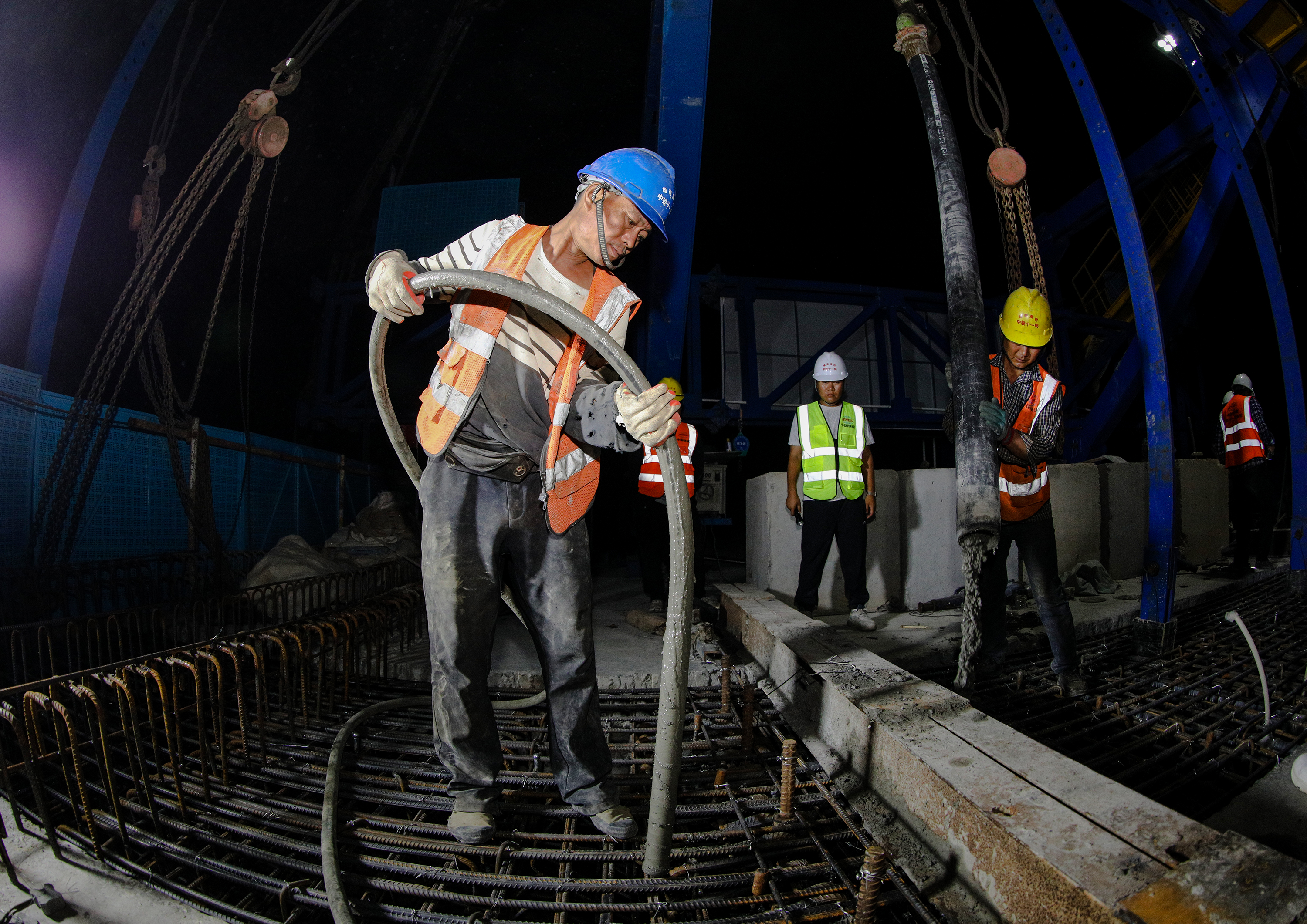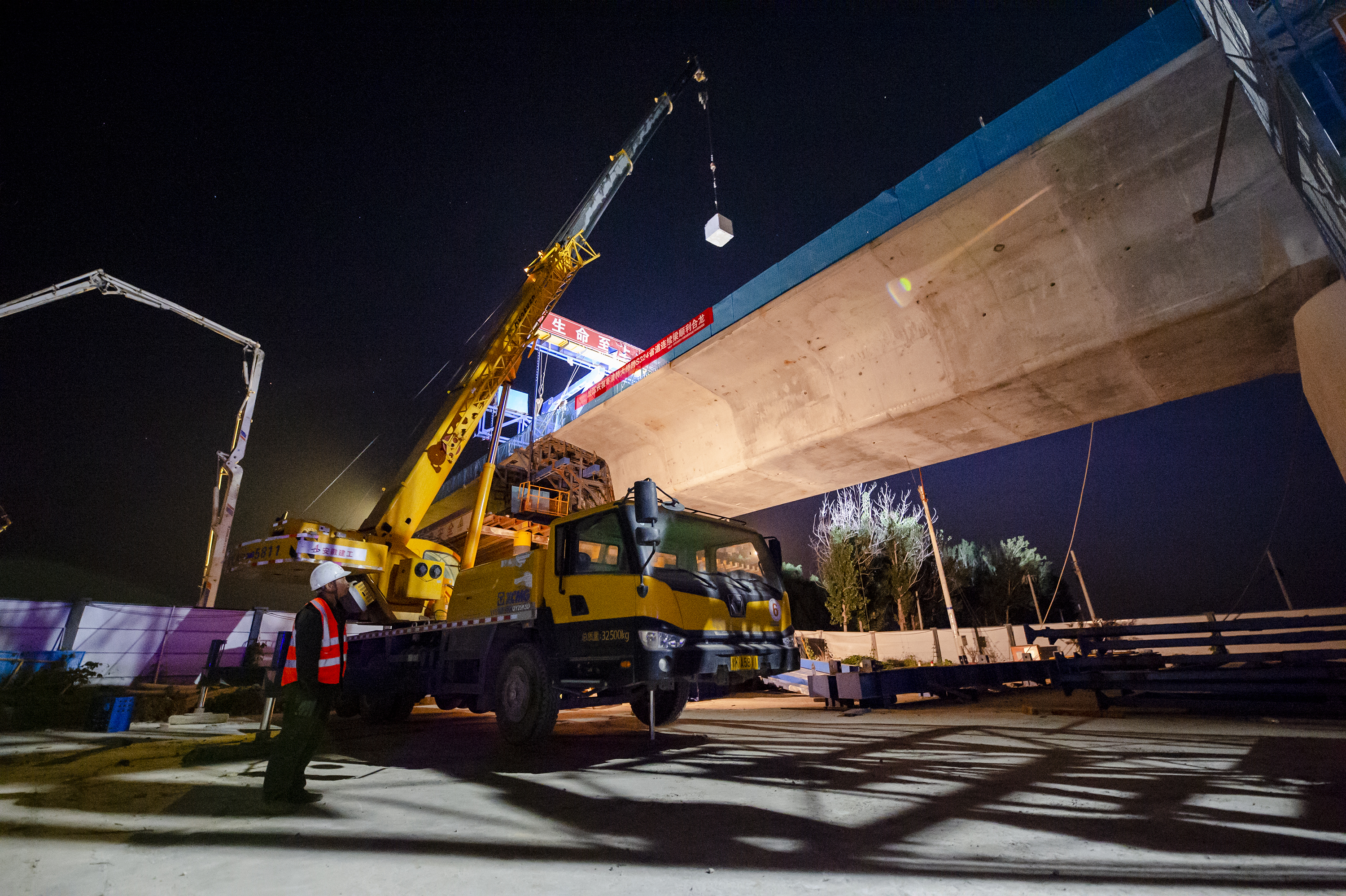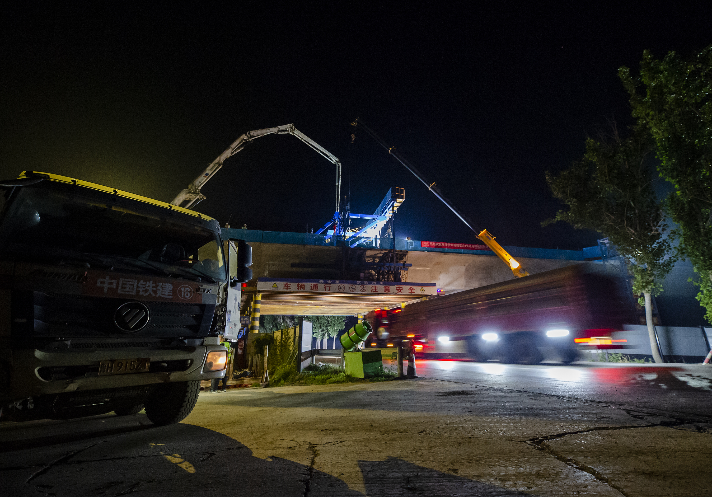 承担施工的中铁十一局雄商高铁站前六标项目部经理谭文介绍,因为跨S324省道这条24小时车流量极大的重要南北交通通道,所以决定采取不断交施工模式。同时,结合所在地气候因素,为保证施工质量,夏季需要在一天中气温最低的时候,在最高距地面9.63米处挂篮悬臂浇筑,但因此带来了安全风险高、技术难度大的问题。项目部召集技术骨干和施工班组集中进行技术交底和安全教育培训,合理配置人员和机械,对钢筋焊接和绑扎、预应力管道定位、预埋件安装和模板加固等工序严格把关。并提前在跨S324省道施工点处搭建了棚架保障过往车辆人员安全。在浇筑过程中,技术人员对浇筑速度、混凝土质量以及浇筑过程中模板变形情况实时检查,保障了施工的质量和时效。