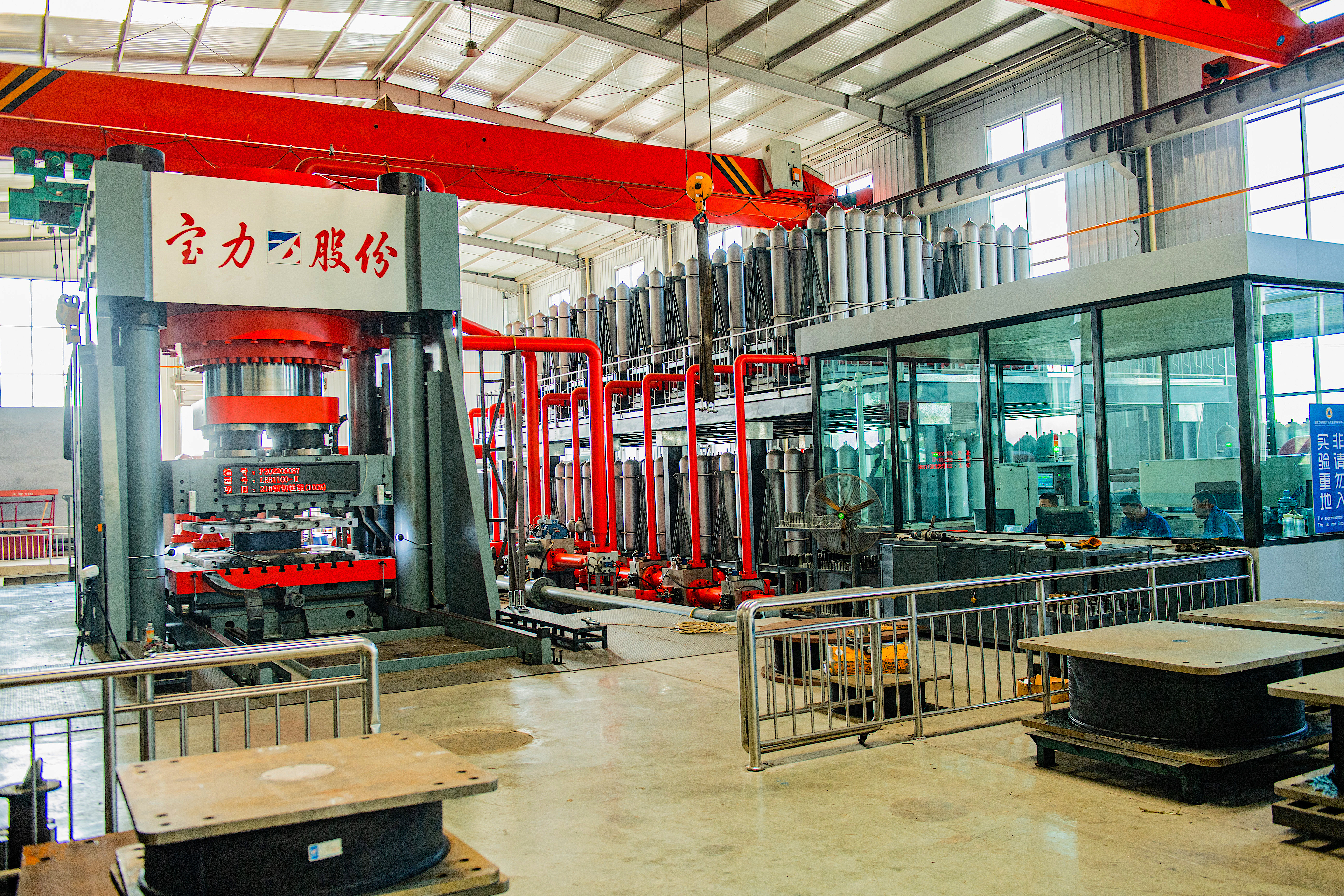 在公司工业设计中心生产车间里,一台大红色的钢框机械格外引人注目。“这是50000吨的动态压剪试验机,可以进行桥梁及建筑隔震支座的压缩、拉伸及剪切性能试验,是目前国内行业领先的最大速度、最快动态压剪试验机。”公司质检部副部长侯晓东介绍说,公司建立了专业化的CNAS(中国合格评定国家认可委员会)实验室,并购置了多台先进的检验检测设备,为产品质量提供坚实保障。