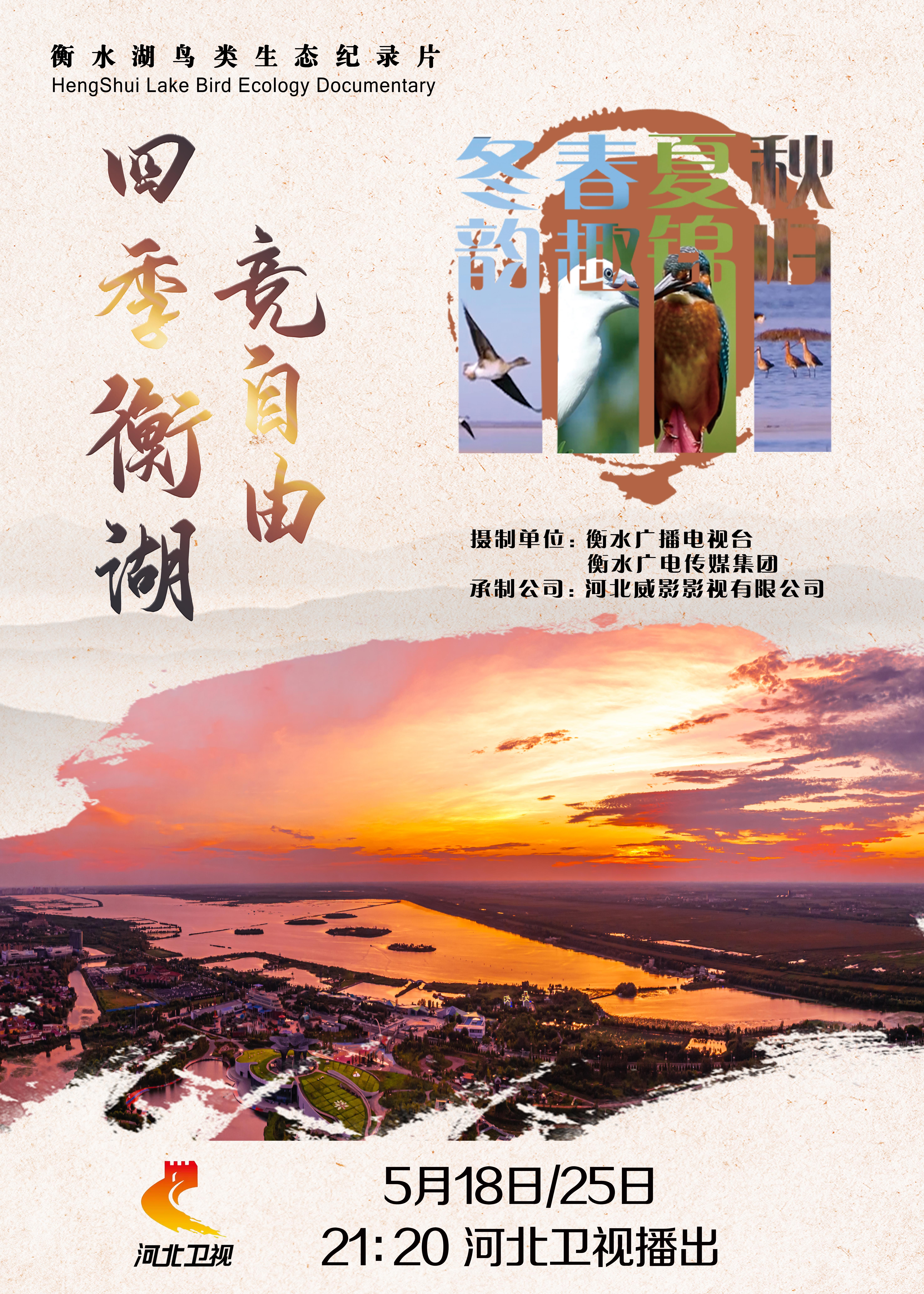 网络视听作品《四季衡湖竞自由》 由衡水广播电视台创作,分《春趣》《夏锦》《秋归》《冬韵》四个篇章,全景式记录了鸟类衔枝筑巢、觅食栖息、繁殖孵化等过程,真实讲述了鸟类世界多彩而生动的故事。衡水湖野生生物保护案例作为河北省唯一入选的现场分享案例亮相联合国生物多样性大会,此纪录片在大会上播放,该片获同时荣河北广播电视节目推优活动一等奖。