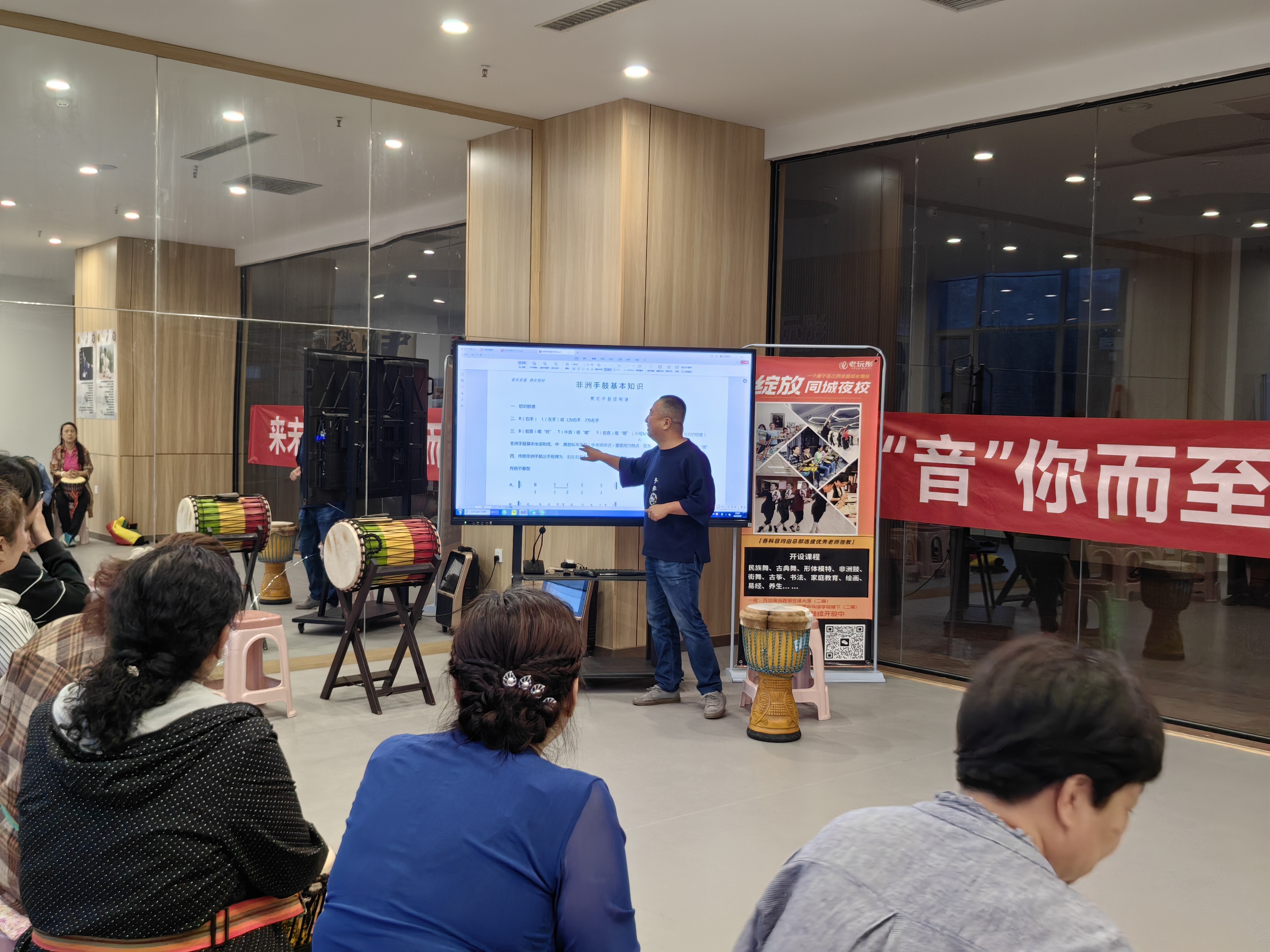 “我一直喜欢非洲鼓,但是之前学习的地方有点远,停车也很麻烦,久而久之就放弃了。前段时间听说咱们街道要开设社区学校,而且有非洲鼓的课程,我立马就报名了!这里从我家走过来仅需要五分钟,真的十分便利。”居民何河啸开心地说,并向大家自信展示新学会的歌曲。