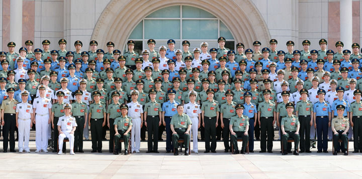 6月17日至19日,中央军委政治工作会议在陕西延安召开。中共中央总书记、国家主席、中央军委主席习近平出席会议并发表重要讲话。这是17日下午,习近平亲切接见会议全体代表。新华社记者 李刚 摄