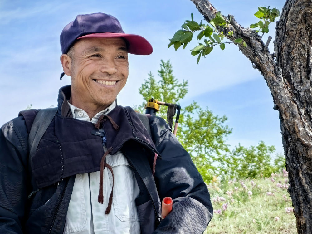 王武山在给果树修枝。新华社记者 达日罕 摄