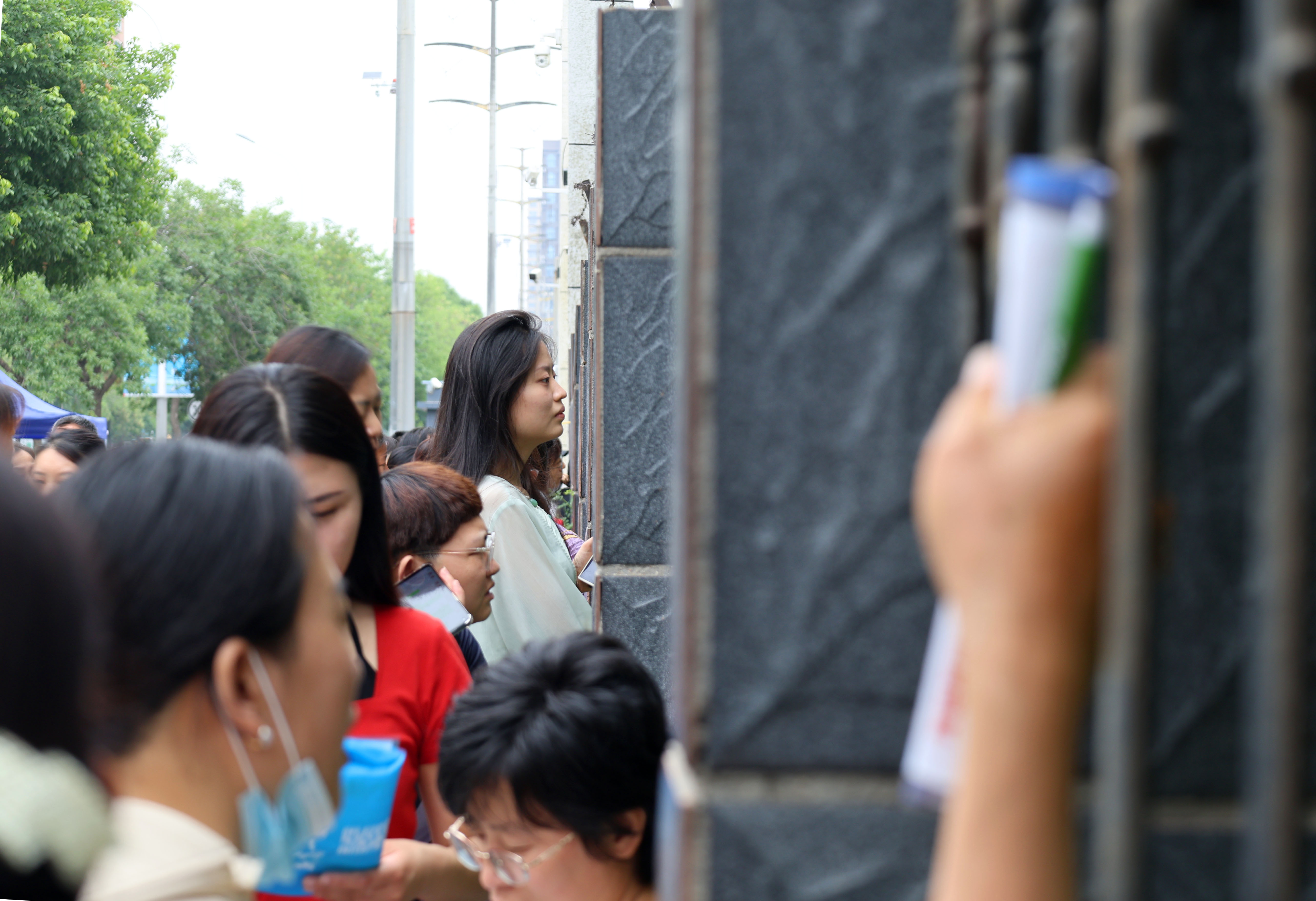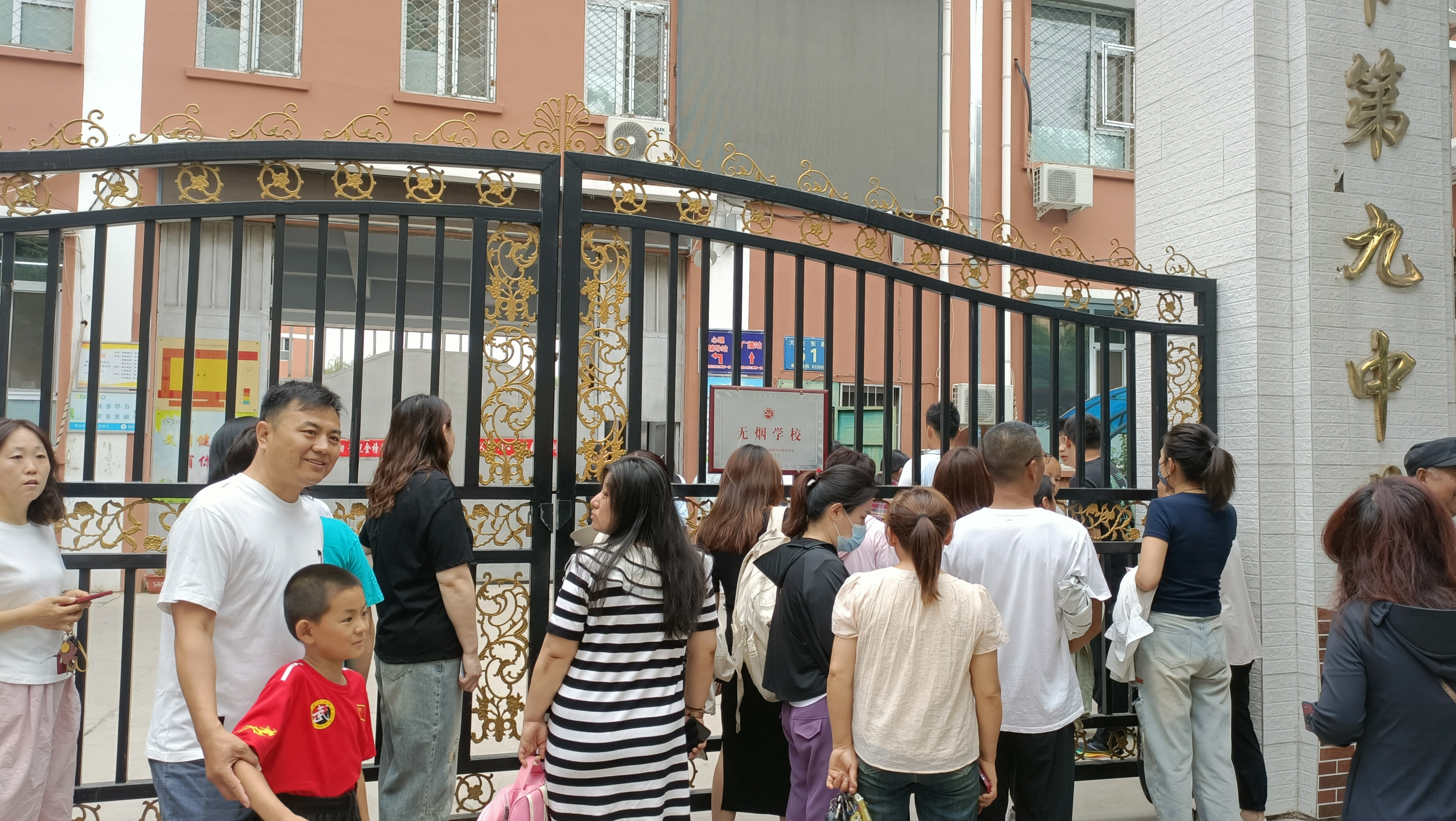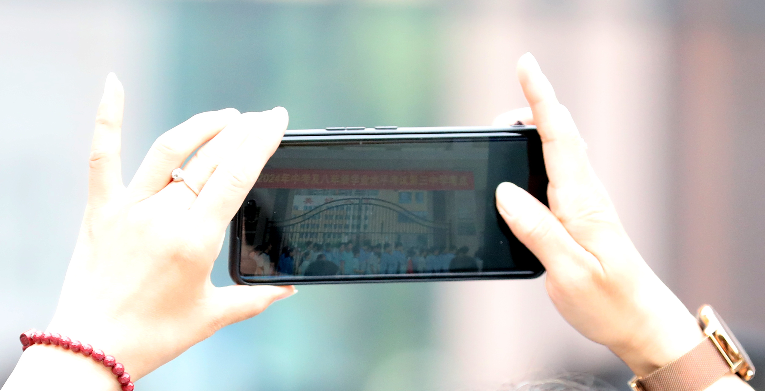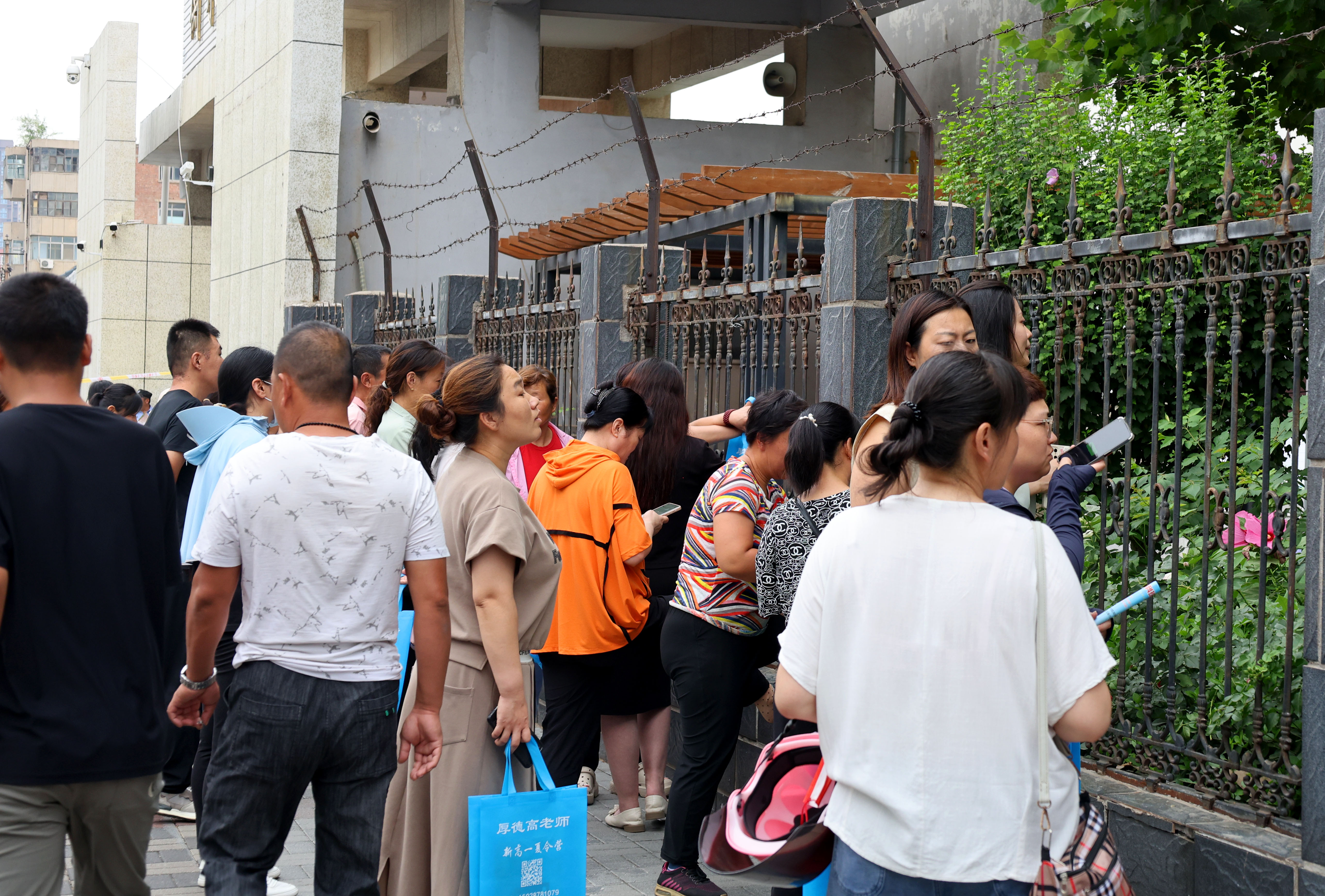 考场外,工作人员忙碌的身影随处可见。他们不时地疏导着现场秩序,提醒送考家长为孩子让出通道,尽快离开考点,营造安静环境。尽管如此,许多送考的家长仍迟迟不肯离去。有的家长凑在一起互讨经验,交流着各自的陪考心得;有的则默默地站在门口,隔着考点栅栏的空隙间,偷偷给孩子拍照、录视频,想要留住这难忘的瞬间。更有家长身着红衣送考,为孩子加油,满心期待孩子能迎来一个“开门红”。