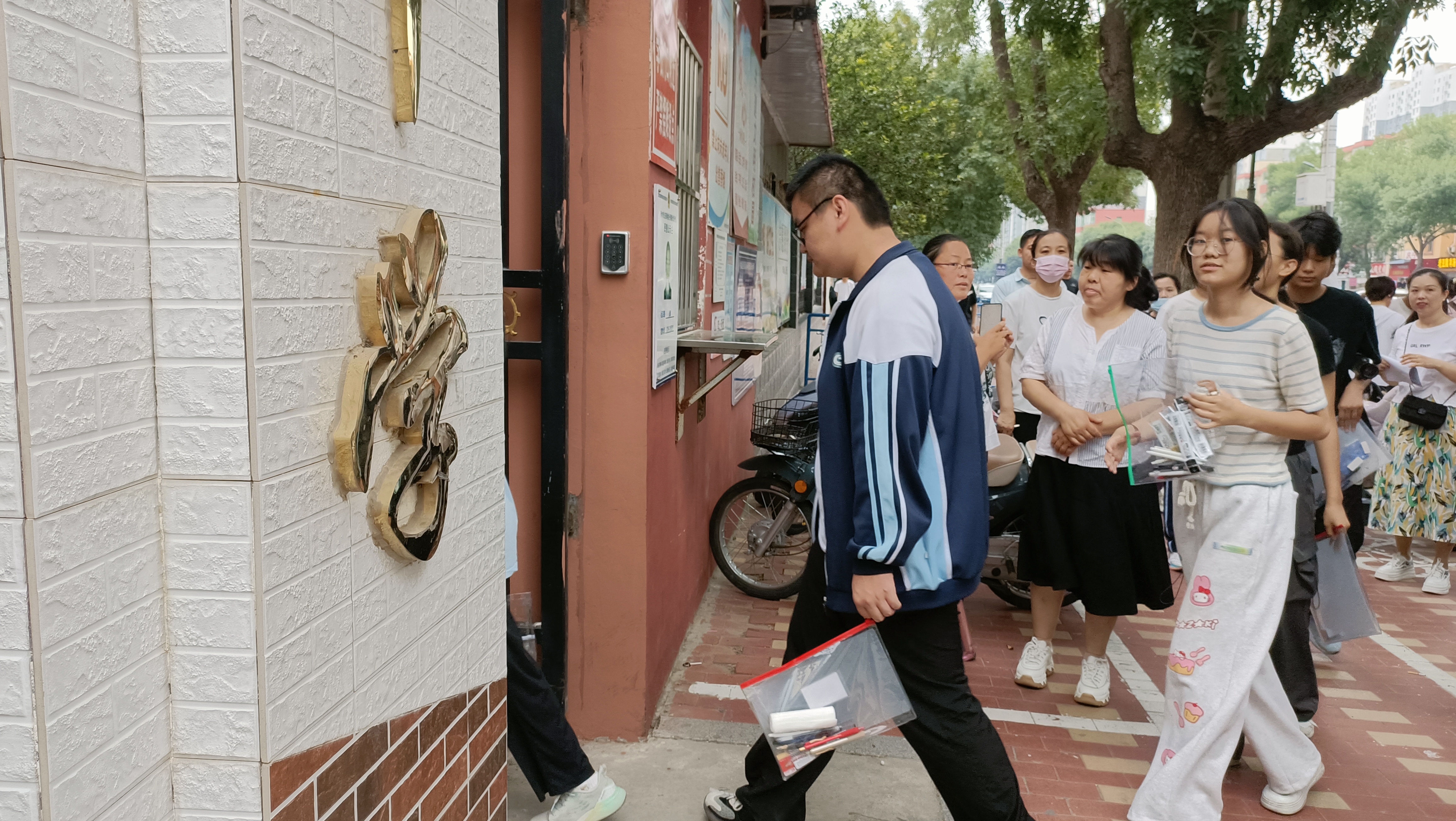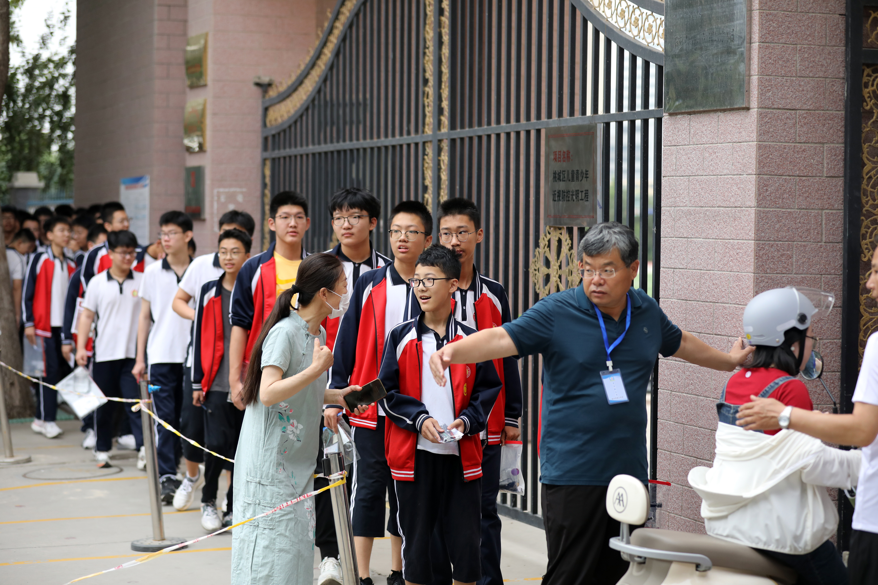 “加油,加油!”三中的一位女老师在考场外送考,她为每位进场的考生加油鼓劲,希望他们不负三年时光,正常发挥,考出优异成绩。随着考试时间的临近,考生们逐一步入考场,他们自信且从容,散发着青春的骄傲与光芒。“咱走啊,孩子进场了,咱们回家做饭去。”上午8时10分许,一些家长看着孩子进入考场,便离开了。也有一些家长依然没有离去,他们选择在考点外默默陪伴,等待孩子走出考场。“爱人回家准备午饭了,我在外面等着孩子,希望孩子沉着应对考试,考个好成绩。”学生家长陈先生告诉记者。