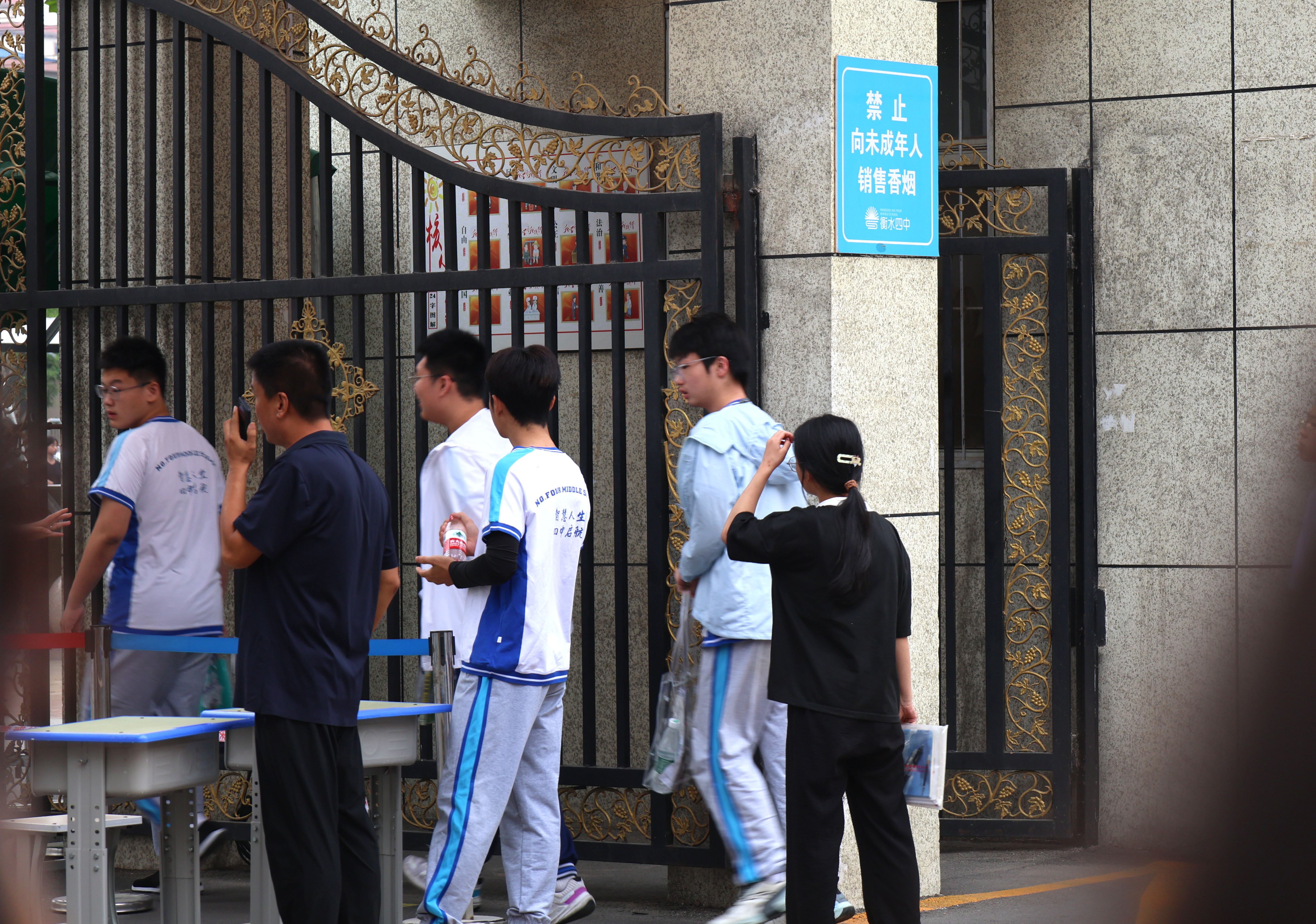 上午 7 时 40 分,记者在衡水市第四中学考点看到,距离开考尚有一段时间,可考点外已然人头攒动。众多考生和陪考家长早早提前“就位”,翘首以待入场时刻的到来。