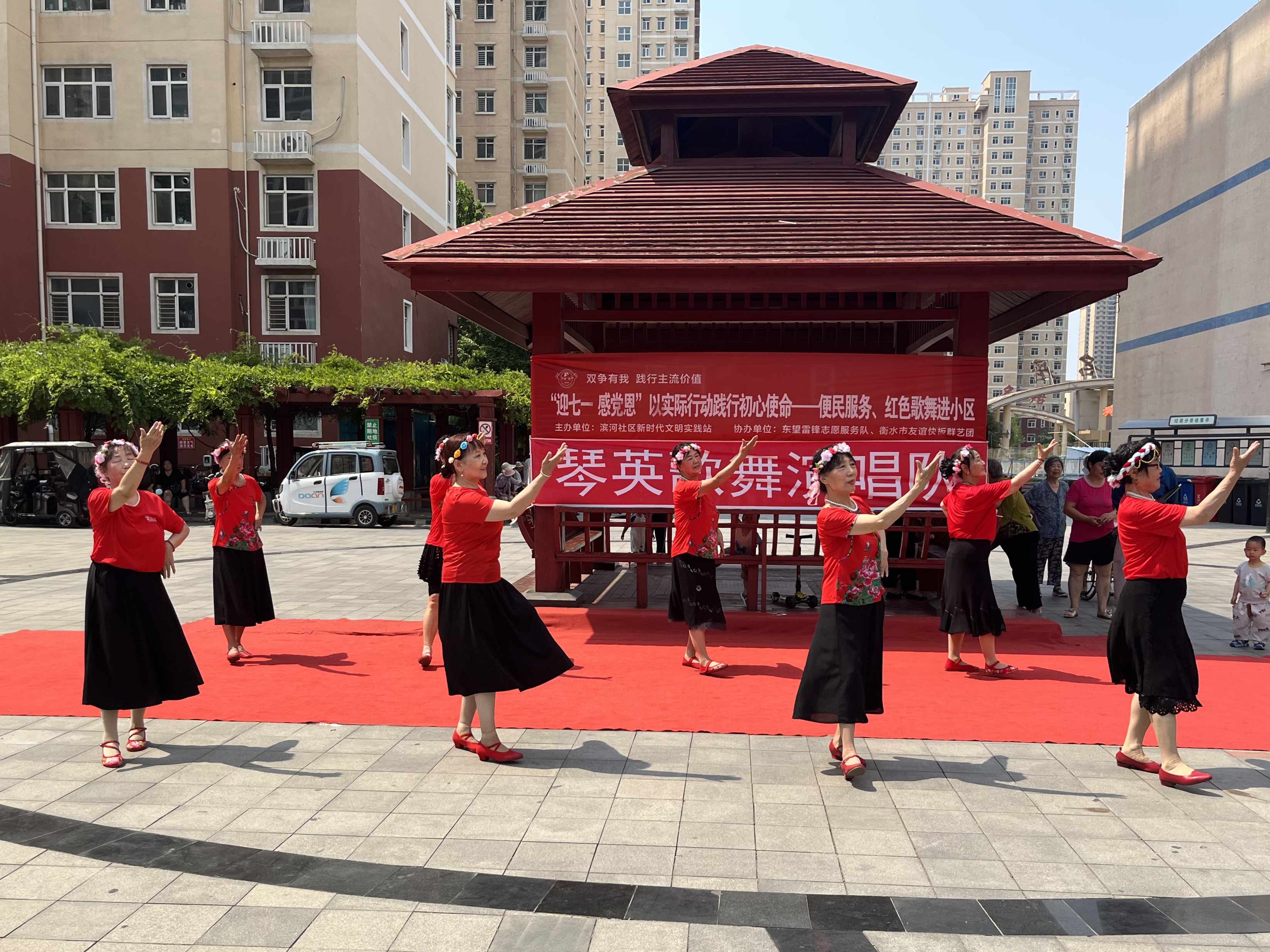 在“七一”即将来临之际,为进一步搭建“我为群众办实事”社区服务平台,满足居民生活需求,6月20日,衡水市桃城区河西街道滨河社区联合市友谊快板群艺团、琴英歌舞演唱队及部分社会爱心志愿者在靓景名居开展了“迎七一 感党恩”以实际行动践行初心使命——便民服务、红色歌舞进小区活动。