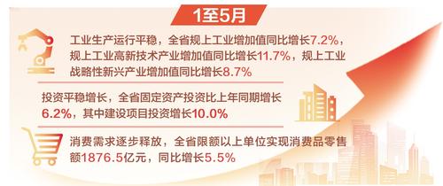 工业生产运行平稳,固定资产投资稳定增长,消费品市场规模扩大……6月20日,省统计局对外发布了1至5月全省经济运行情况。