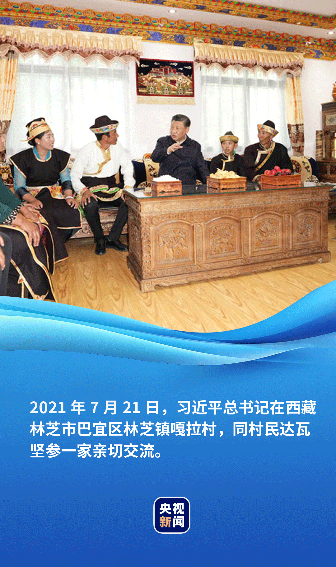 在同村民达瓦坚参一家亲切交流时,总书记说:“乡亲们的好日子得益于党和国家的好政策,也是你们自己用勤劳的双手创造的。要落实好党中央支持西藏发展政策,全面推进乡村振兴。”