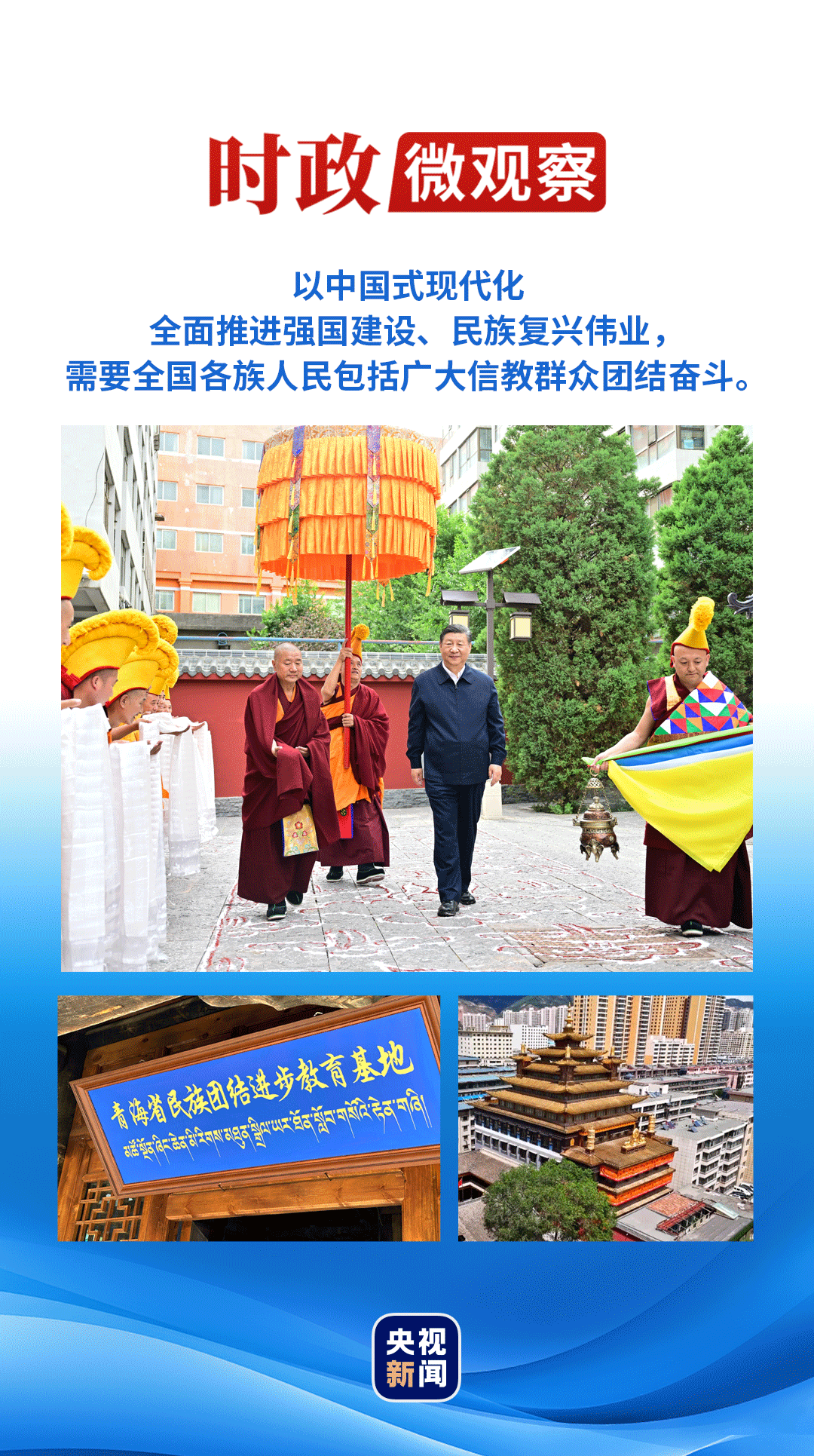 此次在青海考察时,总书记重申,希望青海藏传佛教界弘扬爱国爱教优良传统,促进宗教和顺、社会和谐、民族和睦,在中国式现代化进程中发挥积极作用。