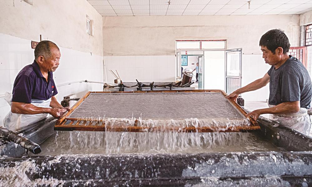 图为河北桑皮纸文化传播有限公司工人抄纸现场。李彬 摄
