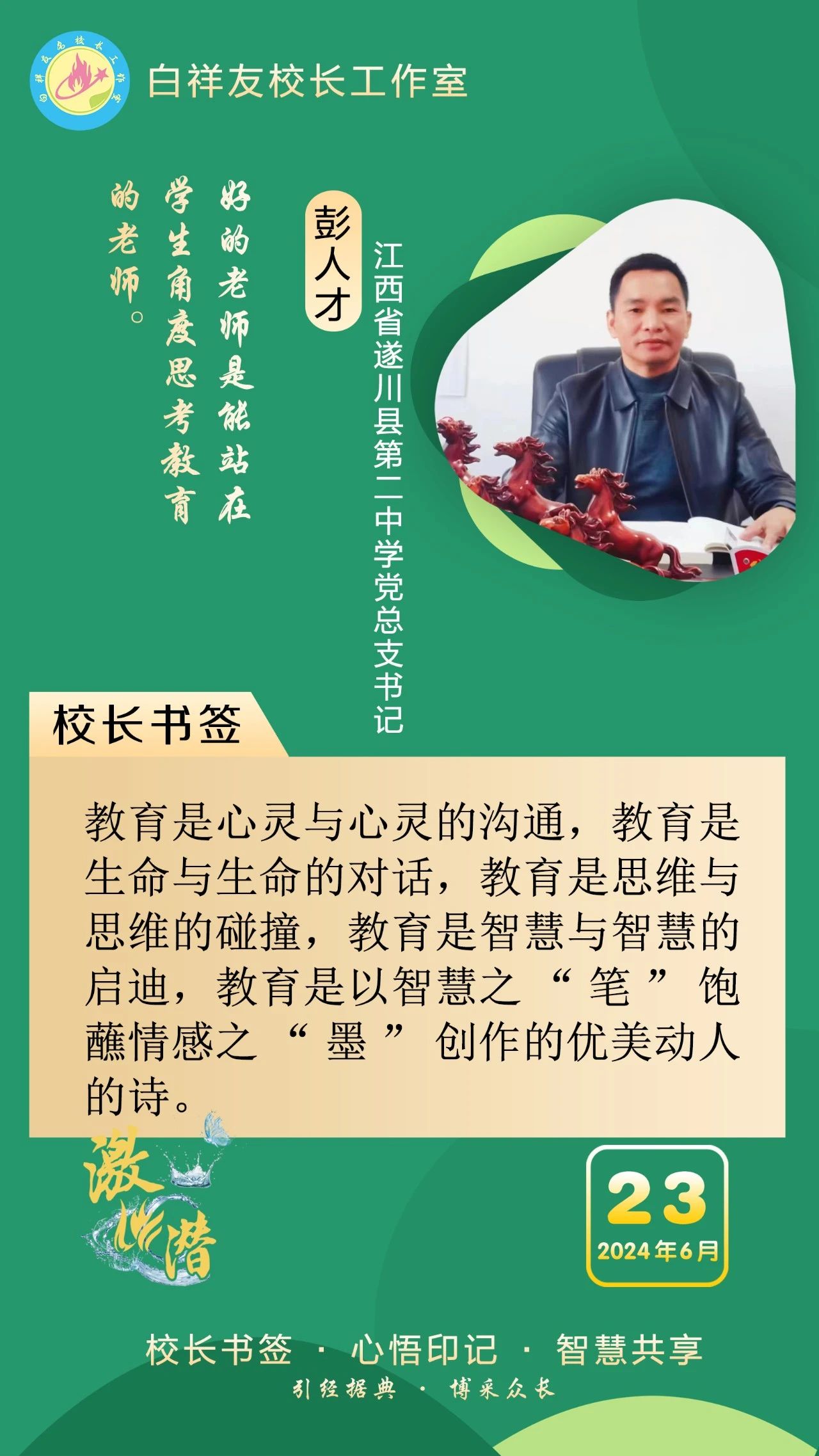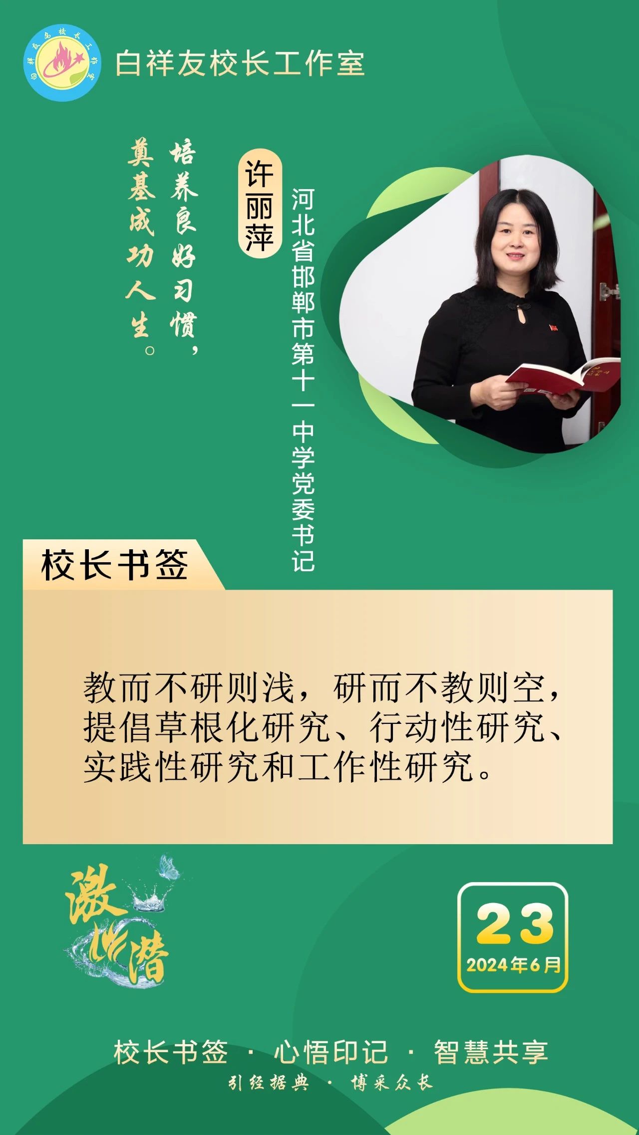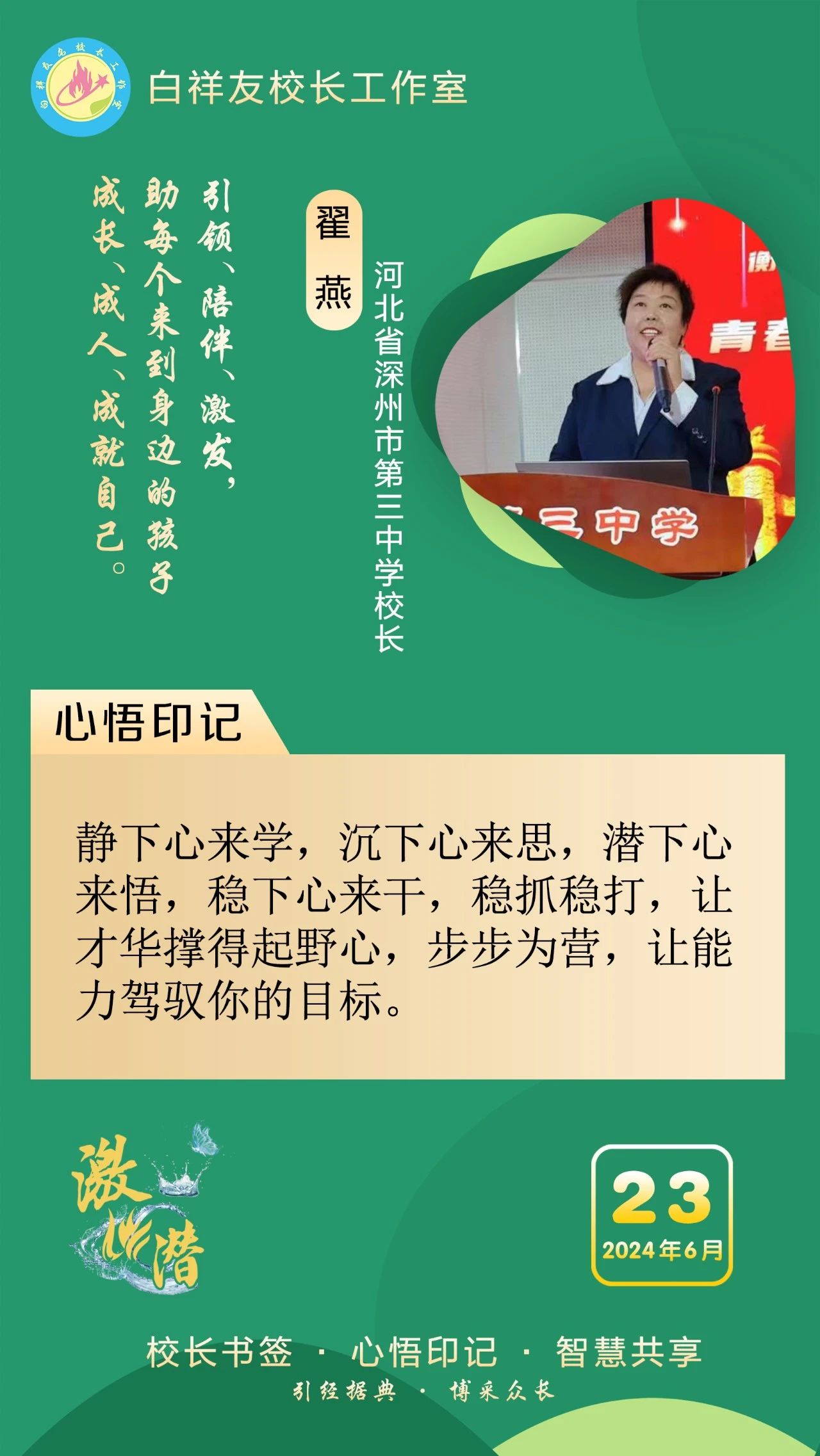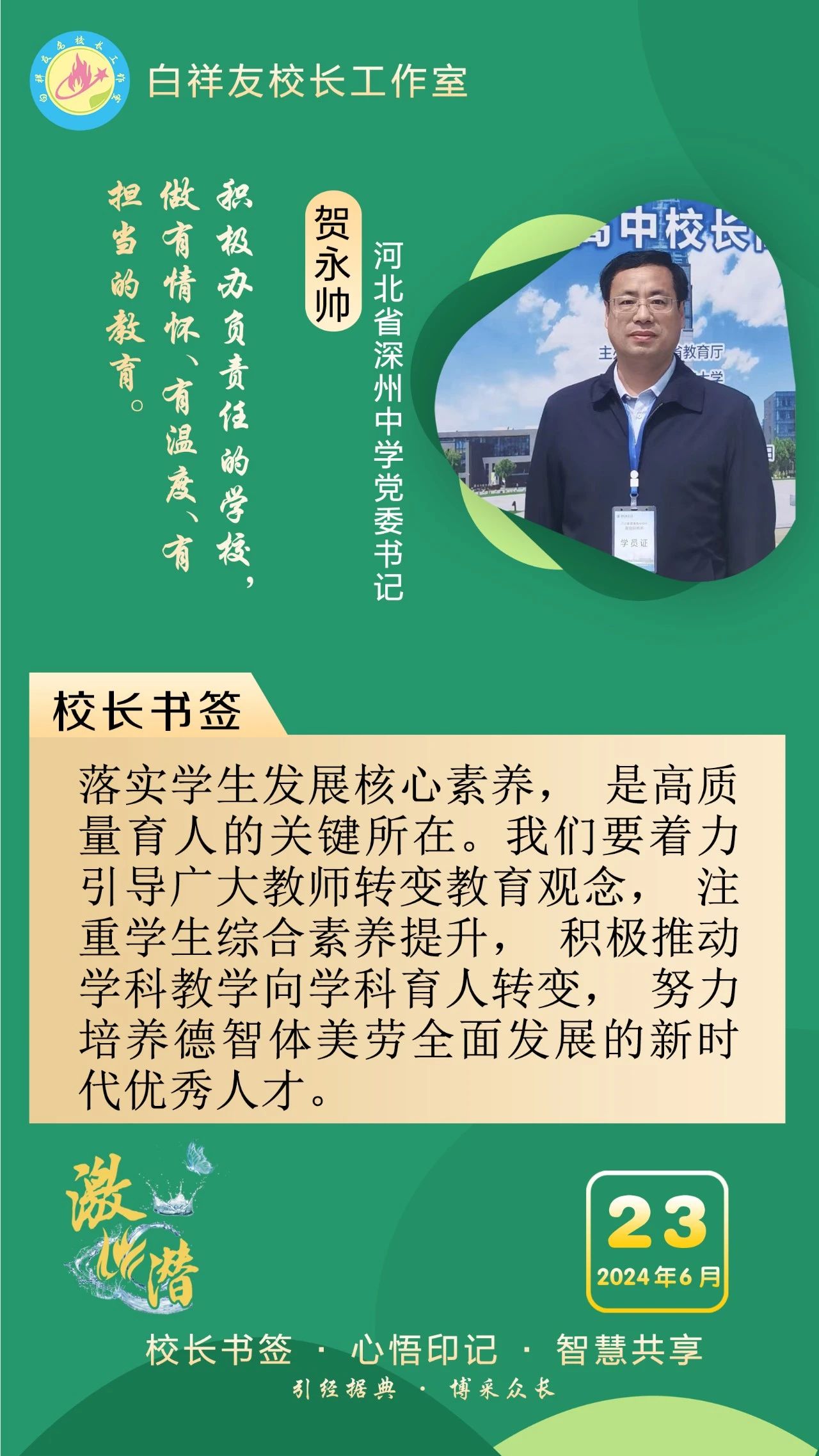 “白祥友校长工作室”成立于2019年4月,是教育部“国培计划”中小学名校长领航工程、河北省首批名校长工作室,目前省内外成员校20个。工作室坚持“资源共享、智慧共融、互助共赢”理念,已成为思想碰撞的交流场,资源共享的品牌站,成果展示的辐射源。