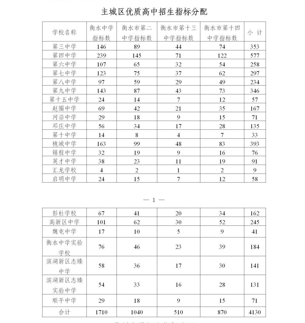 6月24日,记者从衡水市教育局获悉,今年我市14所优质普通高中招生指标分配情况公布。