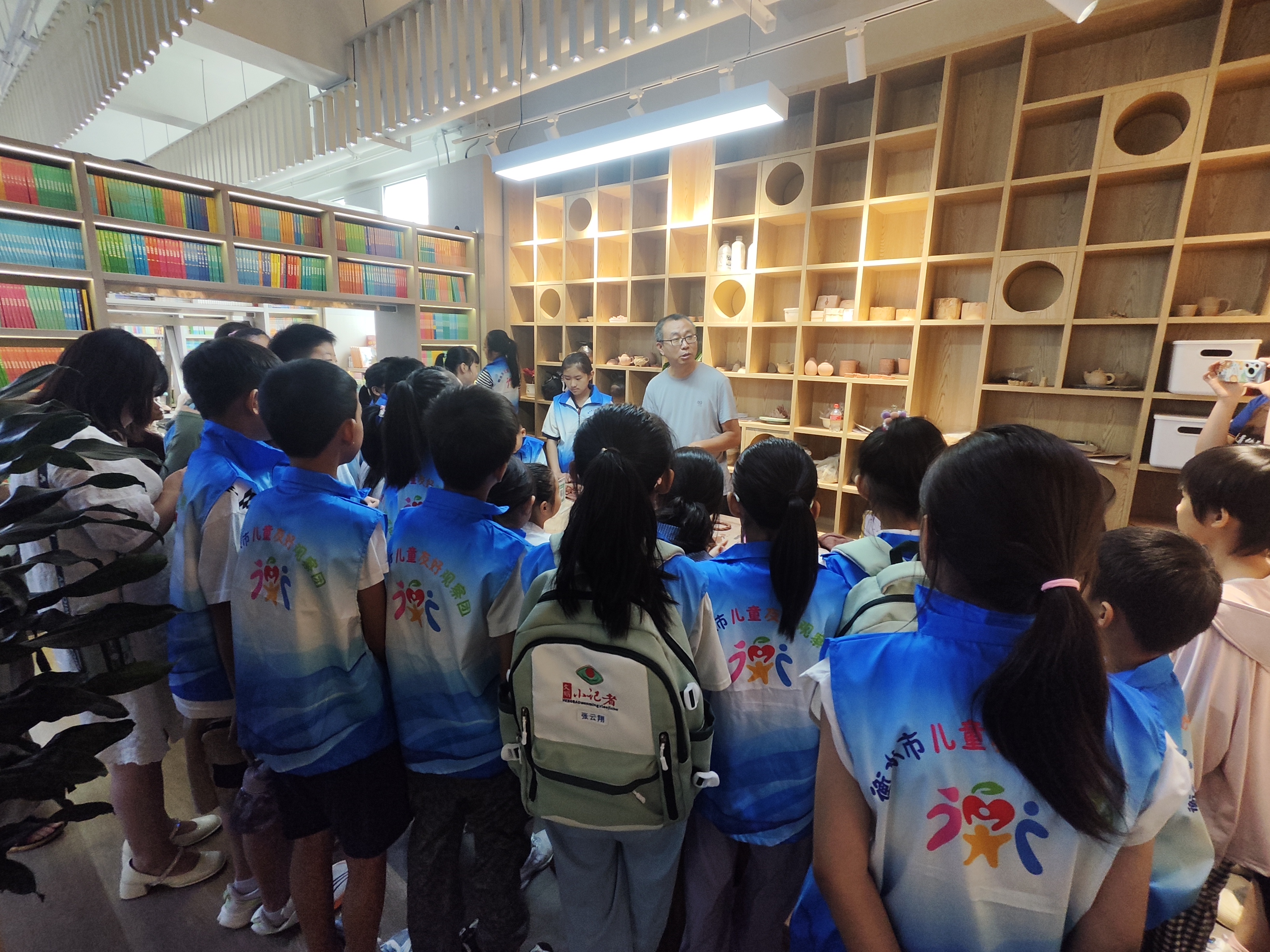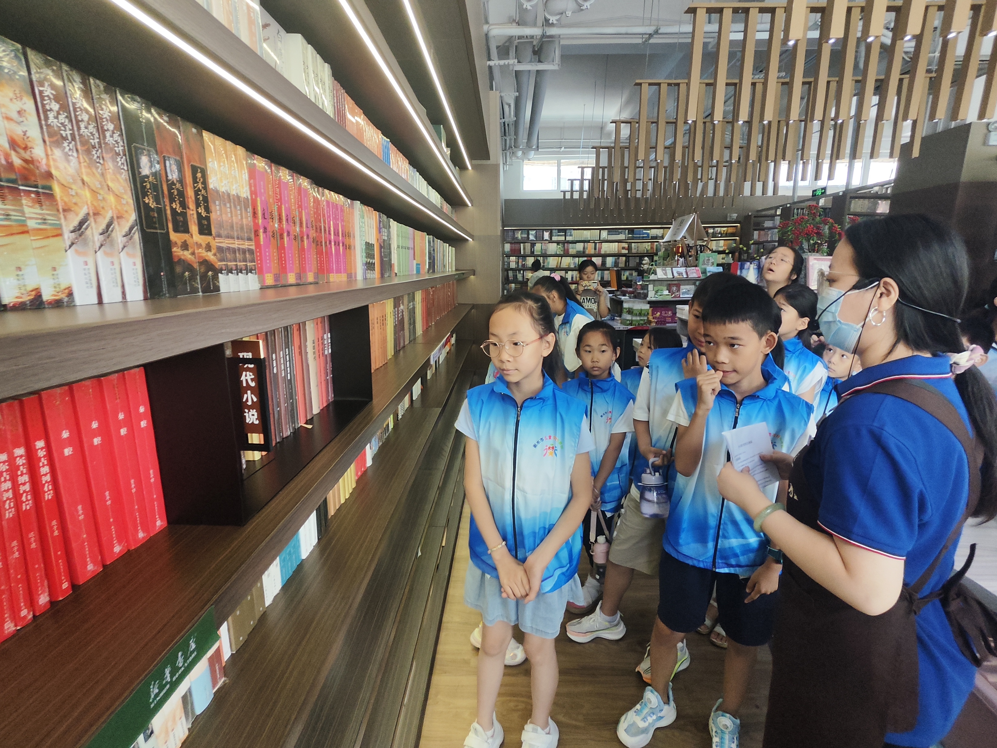 紧接着,新华书店的讲解员化身文化导游,带领小朋友们穿梭在知识的海洋中。从儿童阅读区的童话世界到文学艺术区的经典之作,再到非遗陶艺区的匠心独运,孩子们在每一处角落都能发现惊喜,体验到书店不仅是书籍的聚集地,更是文化的传承之所。