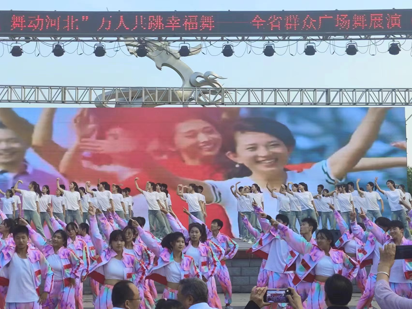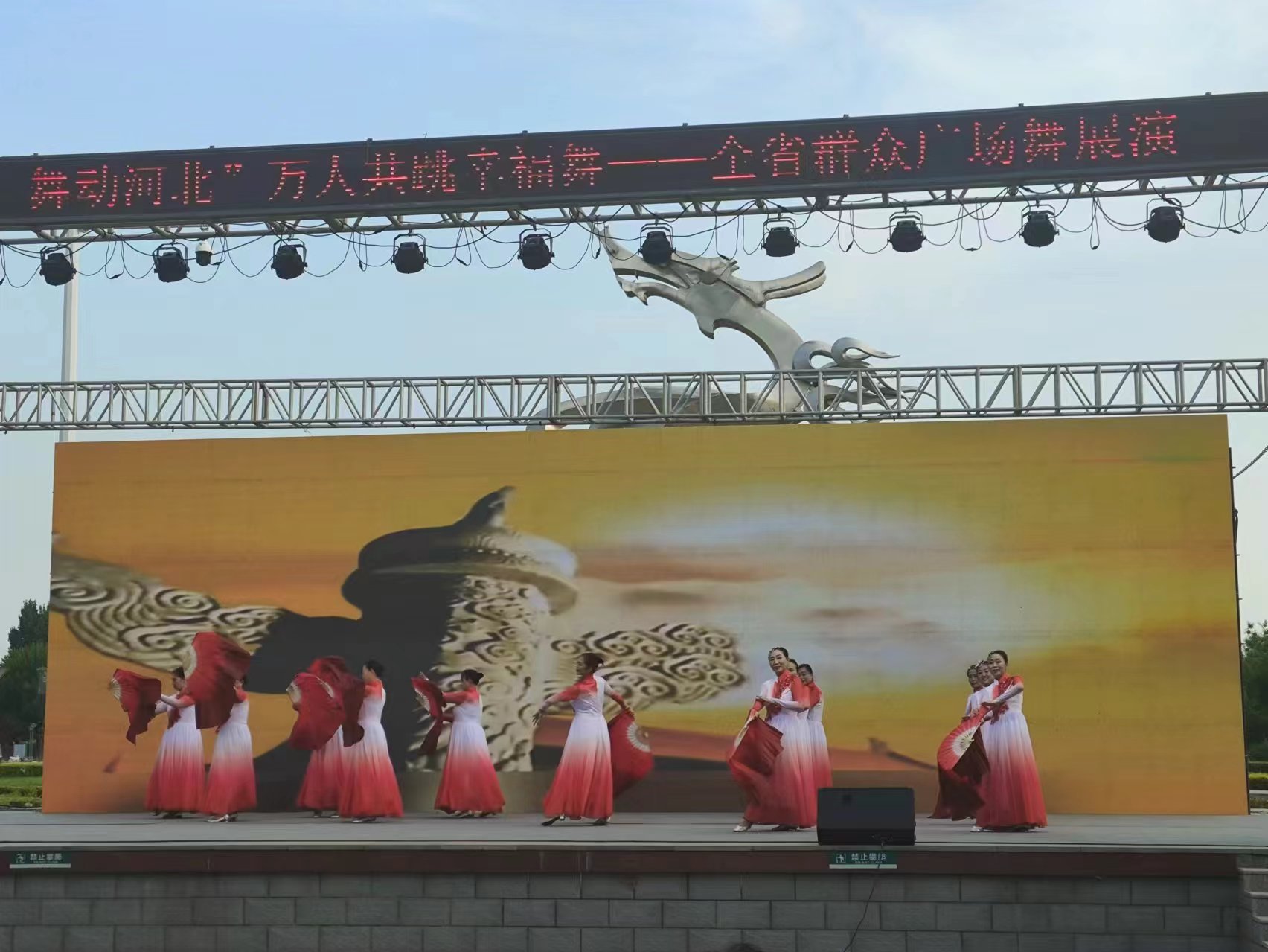 6月26日,迎七一“双争有我·舞动河北”万人共跳幸福舞——全省广场舞展演(衡水站)在衡水市区九州文化广场举行。
