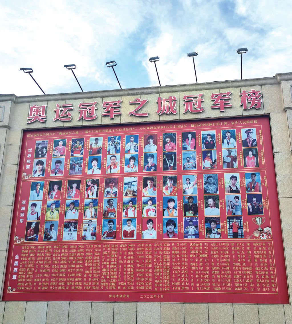记者走访时看到,在保定市体育局大门西侧,有一面高12米、宽8米的“冠军墙”,墙上贴着上百名保定籍冠军的照片。“冠军墙”于2002年8月26日落成,此后几乎每年都在不断扩充。