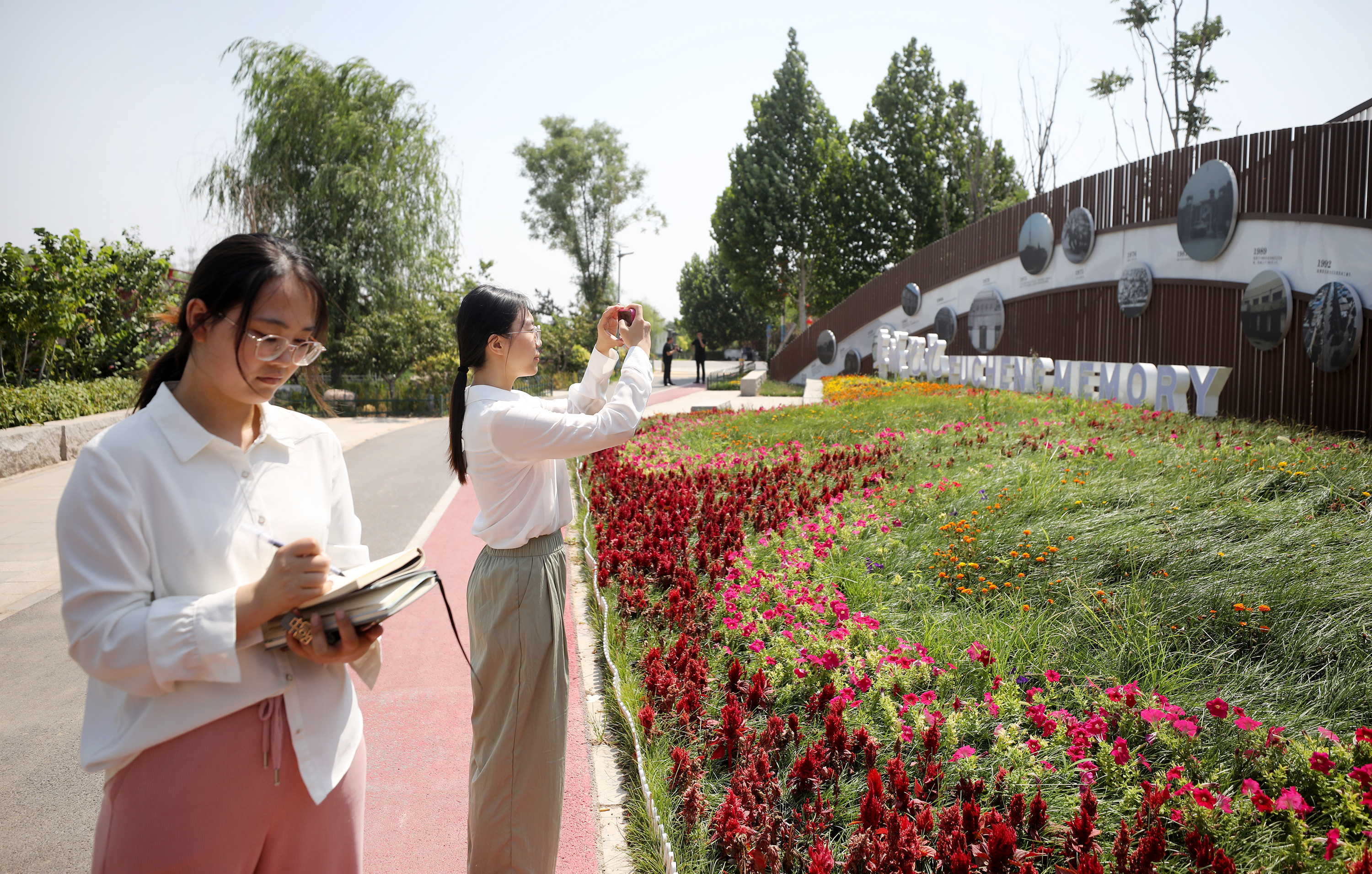 水流涓涓,鸟鸣呖呖。采风团一行走在古城河的桥面上,听着讲解员的介绍:“曾经的黑水河,如今成了群众的‘后花园’。”桥梁上的剪纸景观和翩跹的蝴蝶相映成趣,两岸绿树成荫,休闲步道上,居民们悠然漫步。“以前路过河边都得绕着走,垃圾随处可见,现在生态环境变好了,大家也都积极维护了,这不,小孩儿吃剩的雪糕棍儿都在手里攥着,看见垃圾桶了再扔。”附近小区的居民韩忠良说完后擦了擦汗,沿着河边步道继续跑了起来。阜城县环城水系改造项目既是一项民生工程,也是一项民心工程,建设内容包括河道清淤、绿化提升、沿河两岸景观工程等。项目设计以“人文玉带、生态绿廊”为主题,体现出“生态修复、水清岸绿、景观提升、文化彰显”的特色,既增加了老城区公共基础设施,又满足了居民休闲需求。