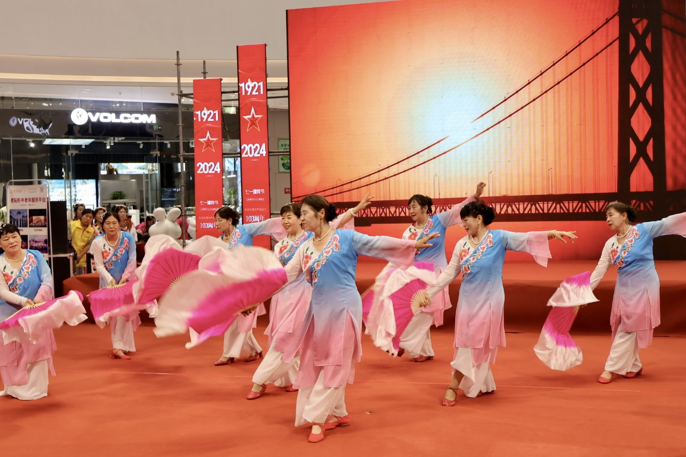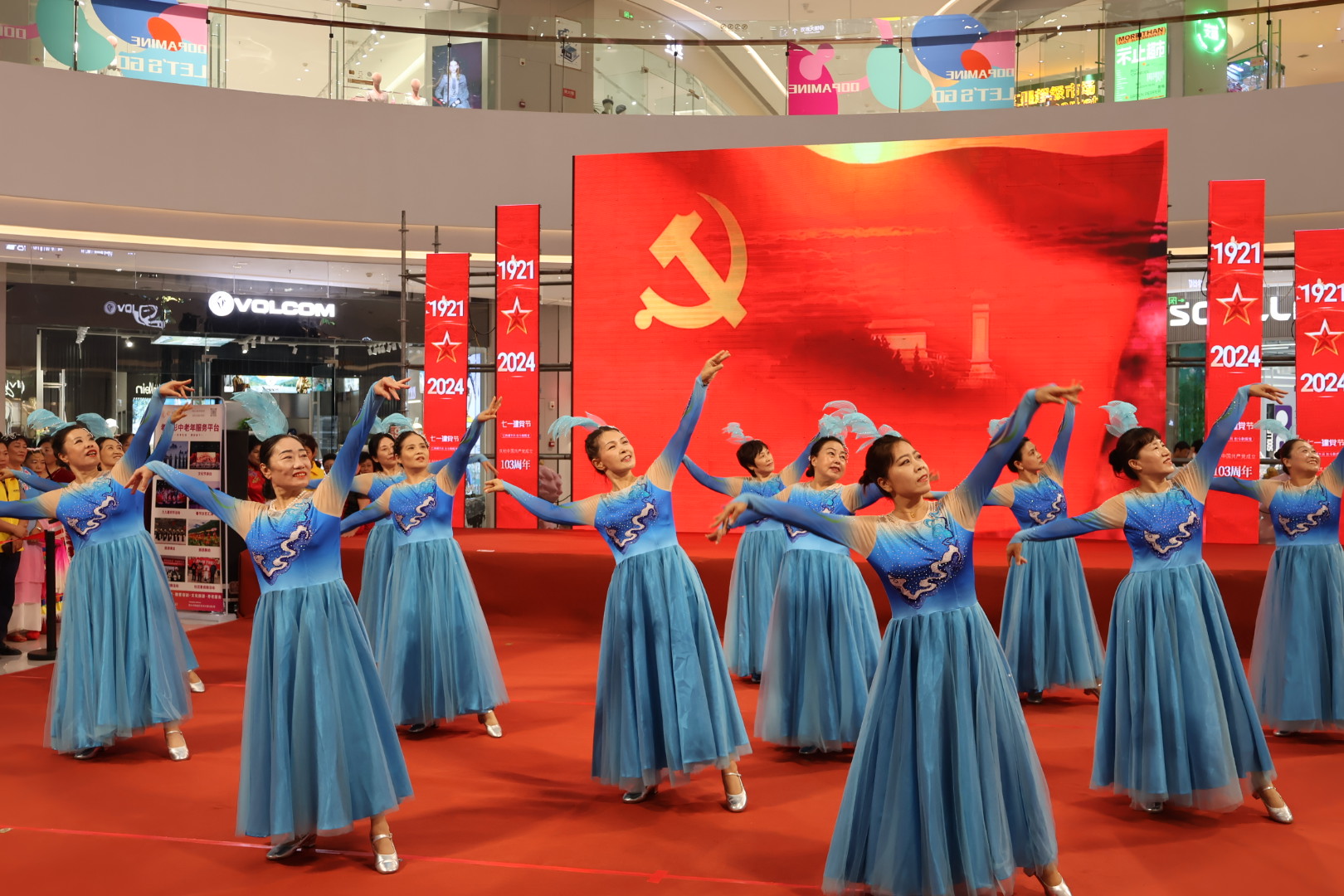 为庆祝中国共产党成立103周年,6月28日晚,桃城区中华大街街道在爱琴海购物广场组织开展了“永远跟党走·奋进新征程”庆“七一”文艺汇演。