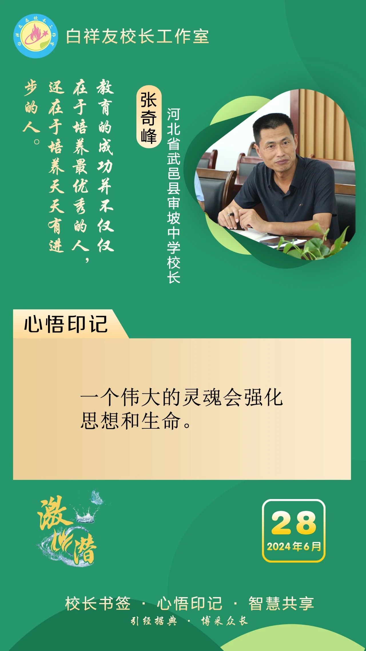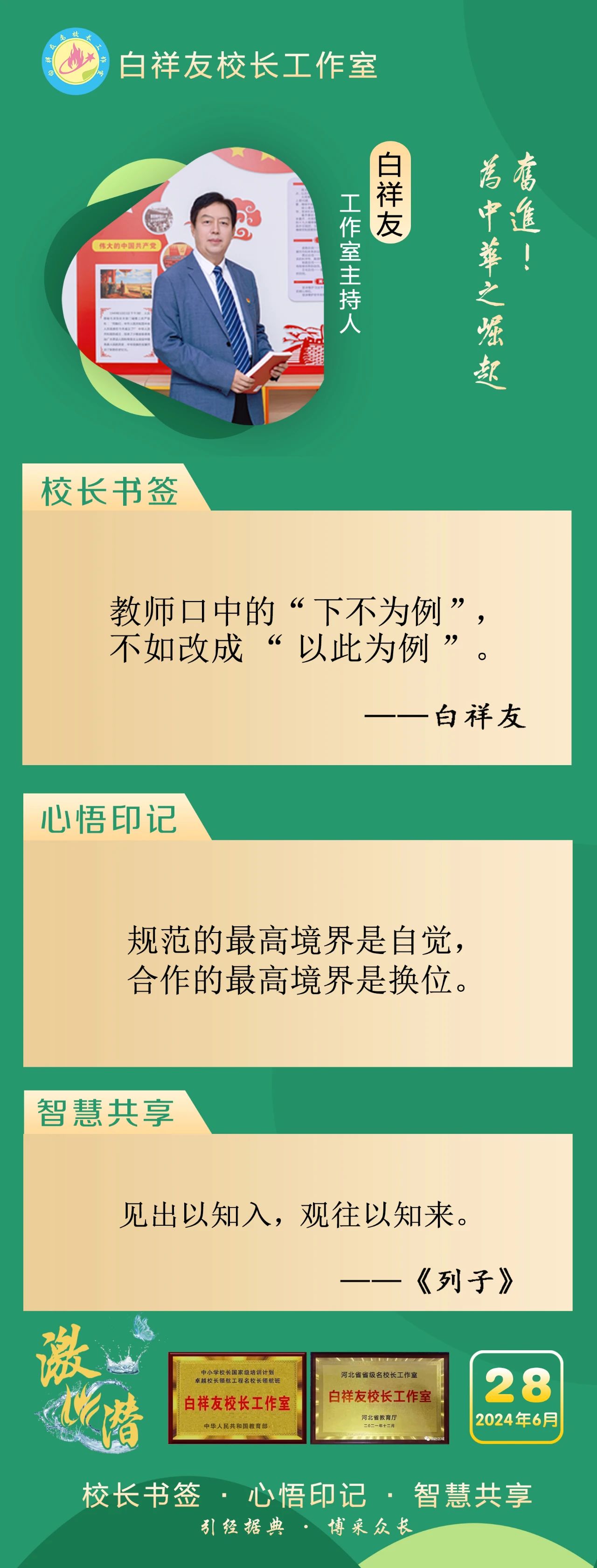 “白祥友校长工作室”成立于2019年4月,是教育部“国培计划”中小学名校长领航工程、河北省首批名校长工作室,目前省内外成员校20个。工作室坚持“资源共享、智慧共融、互助共赢”理念,已成为思想碰撞的交流场,资源共享的品牌站,成果展示的辐射源。