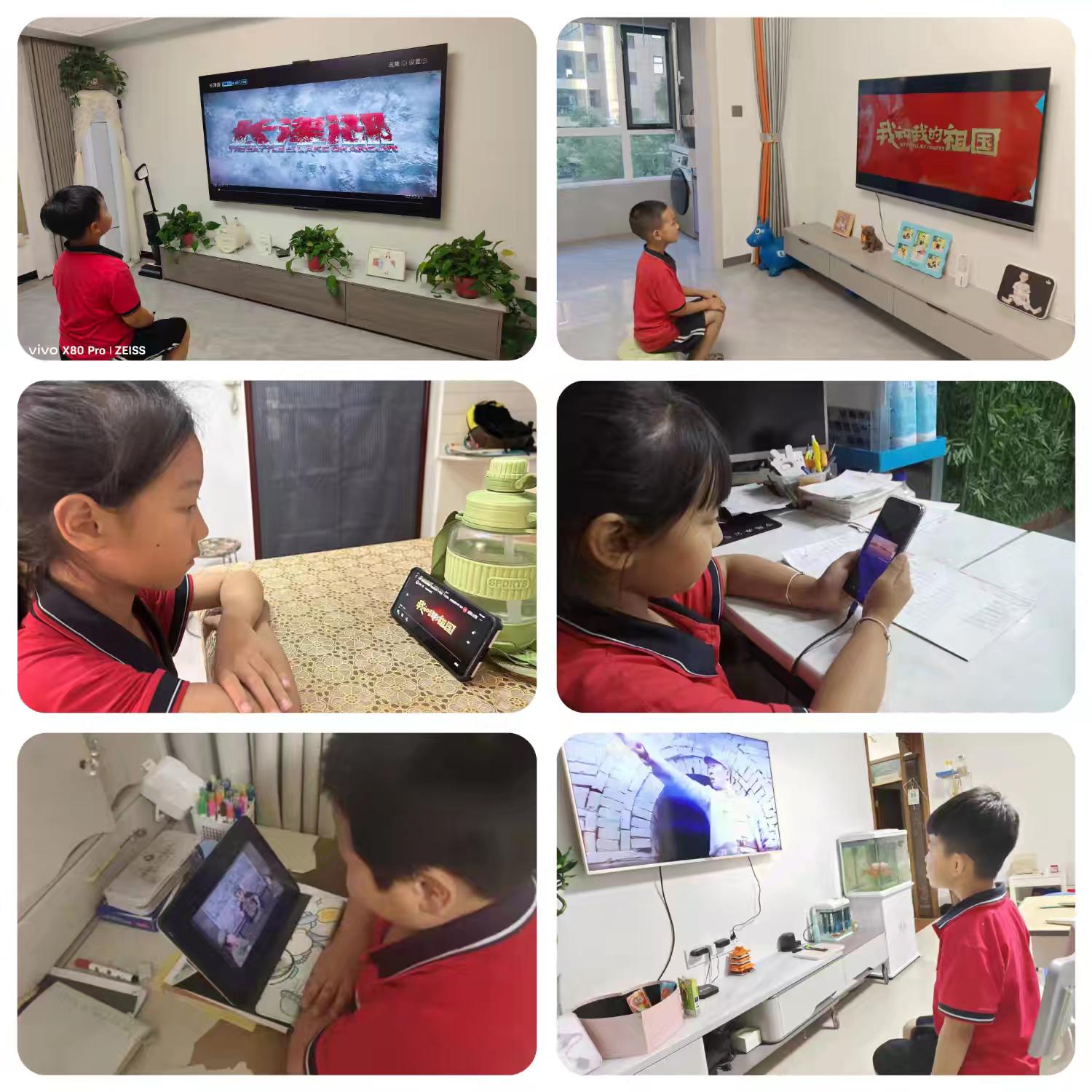 安平四小的同学们正在观看爱国主义影片。