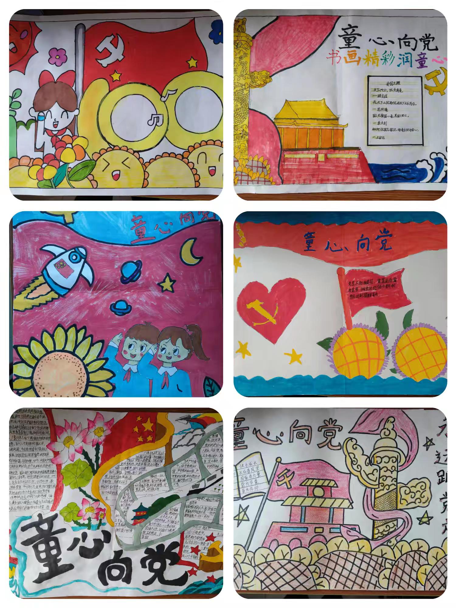 安平四小同学们的“七一”主题画作。