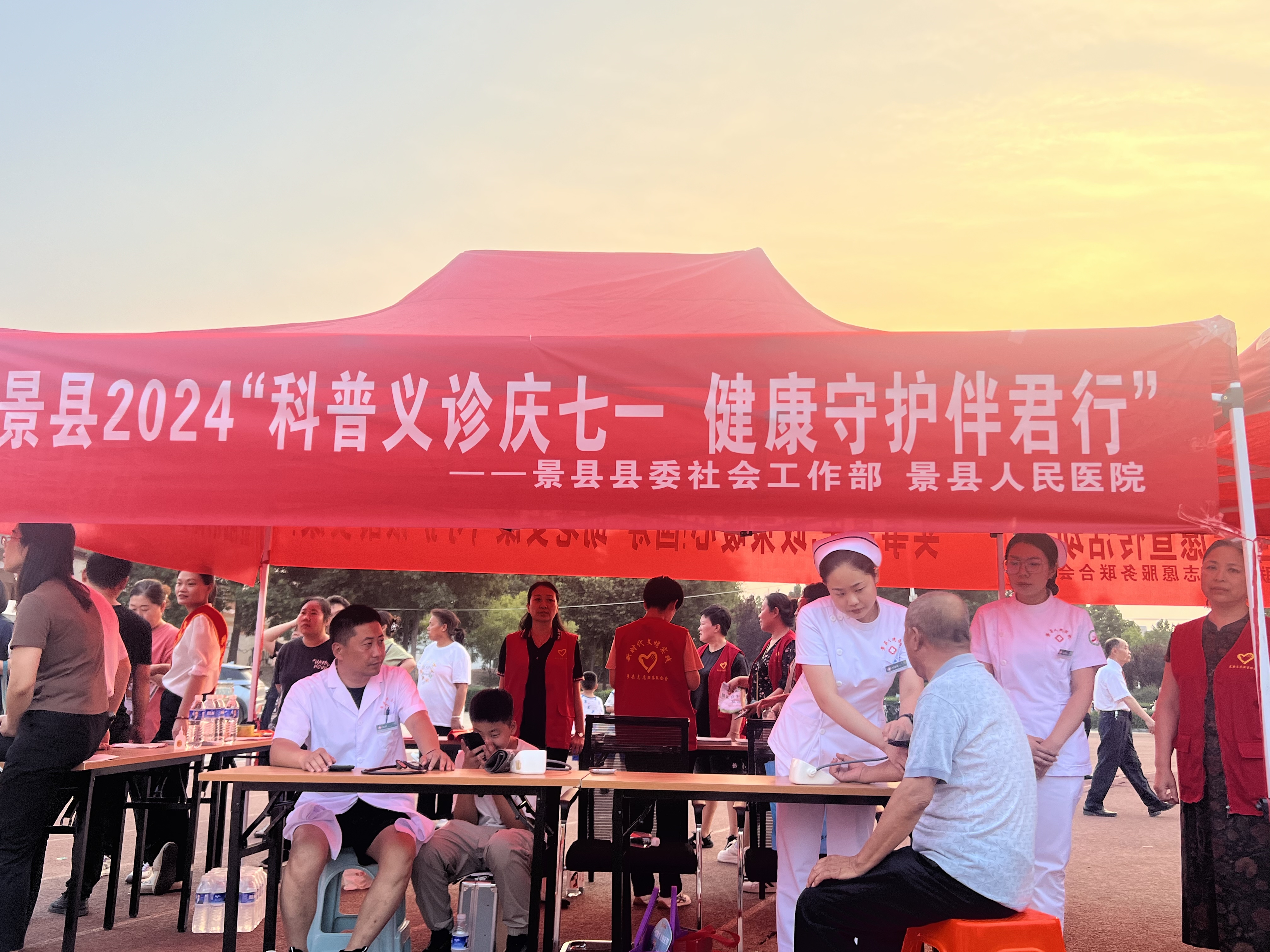活动现场,县委社会工作部联合景县民政局、景县妇女联合会和景县志愿服务联合会设立“文明新风润景州 移风易俗促和谐”宣传台,向现场观众发放《修订村规民约 倡文明新风》宣传页,倡导移风易俗,树立文明新风。景县人民医院设立“科普义诊庆七一 健康守护伴君行”健康知识宣传台,并开展免费体检活动,为现场观众免费测量血压、血糖,针对身体状况给予健康指导。同时设立“反对浪费、崇尚节约”“红色党建引领,志愿服务助力,共建和谐景州”等宣讲台,共发放宣传资料2000余份。