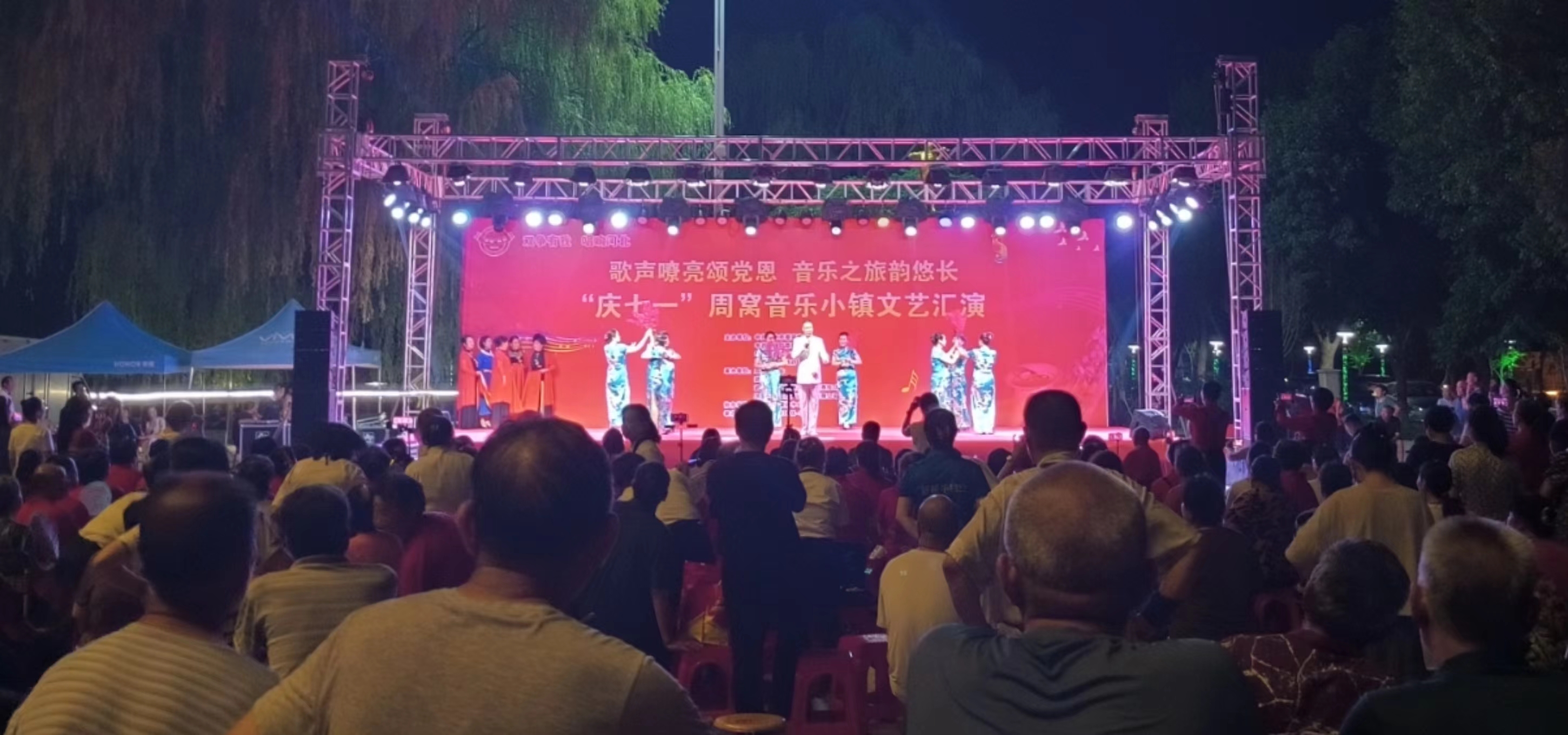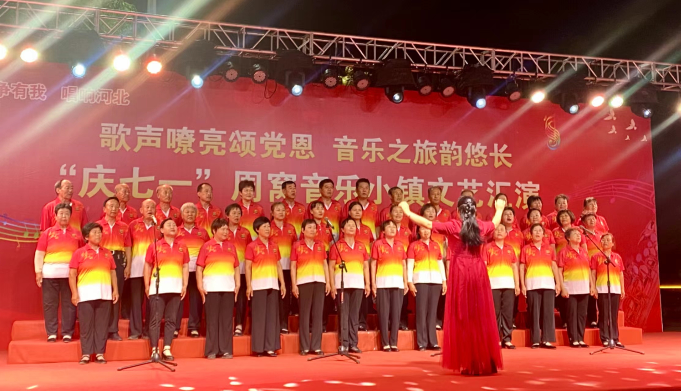 为庆祝中国共产党成立103周年,6月30日晚,“歌声嘹亮颂党恩 音乐之旅韵悠长”武强县“庆七一”系列文艺汇演在周窝音乐小镇举办。