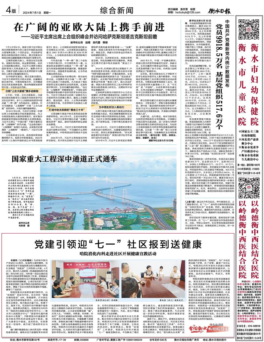 为庆祝中国共产党成立103周年、弘扬伟大建党精神、充分发挥党员干部服务群众的先锋模范作用、扎实推进“双报到”工作的深入开展,6月29日,衡水市人民医院(哈励逊国际和平医院)消化内科主任、内科第一党总支第四党支部书记张丽贤带领医务工作者,到桃城区中华大街街道丽景社区开展健康宣教活动,现场为居民答疑解惑,让老百姓在家门口就能享受到国家三级甲等综合医院的优质医疗服务,增强了社区百姓的获得感和幸福感,赢得了广泛好评。
